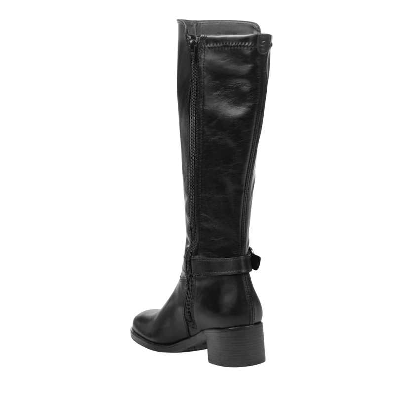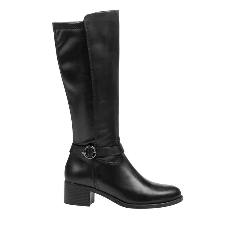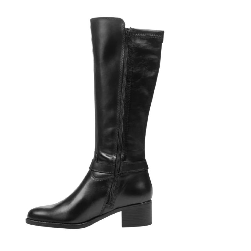 Bota para mujer de la marca Tamaris. Fabricado en piel, en color negro, con tacón de 5cm, plantilla de tejido acolchada, suela de goma y cierre con cremallera.
