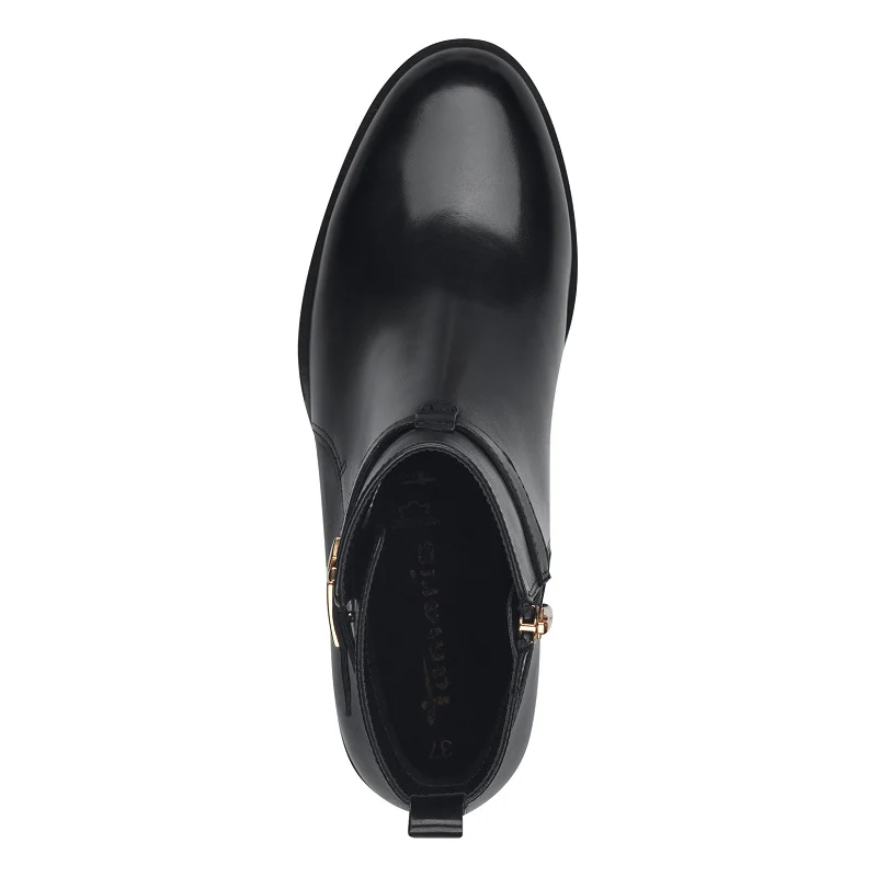 Estos botines Tamaris modelo Women Boots 1-25321-43 en color negro combinan piel de alta calidad con un diseño estiloso y discreto. Su tacón medio ofrece el equilibrio ideal entre elegancia y comodidad para uso diario. La suela y estructura pensadas para el confort casual los hacen perfectos para acompañar tu estilo en cualquier ocasión, mientras el logotipo sutil en el lateral aporta un toque de distinción sin perder sobriedad. Una opción versátil y duradera para el guardarropa femenino.