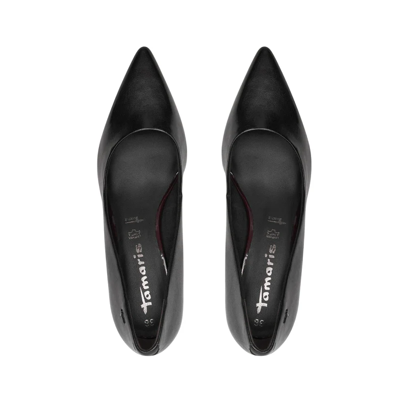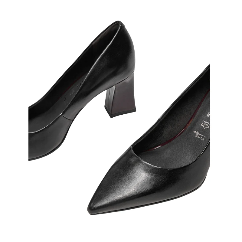 Este zapato salón para mujer de Tamaris combina elegancia y comodidad gracias a su cuero natural de piel de flor en la parte superior y plantilla de cuero. Su diseño en color negro con punta estilizada y tacón geométrico de 7.5 cm ofrece un ajuste slip-on práctico para uso casual. La suela de material de alta calidad y la tecnología Touch it garantizan una pisada confortable y segura durante todo el día. Un calzado versátil y sofisticado, ideal para quienes valoran estilo y confort en su día a día.