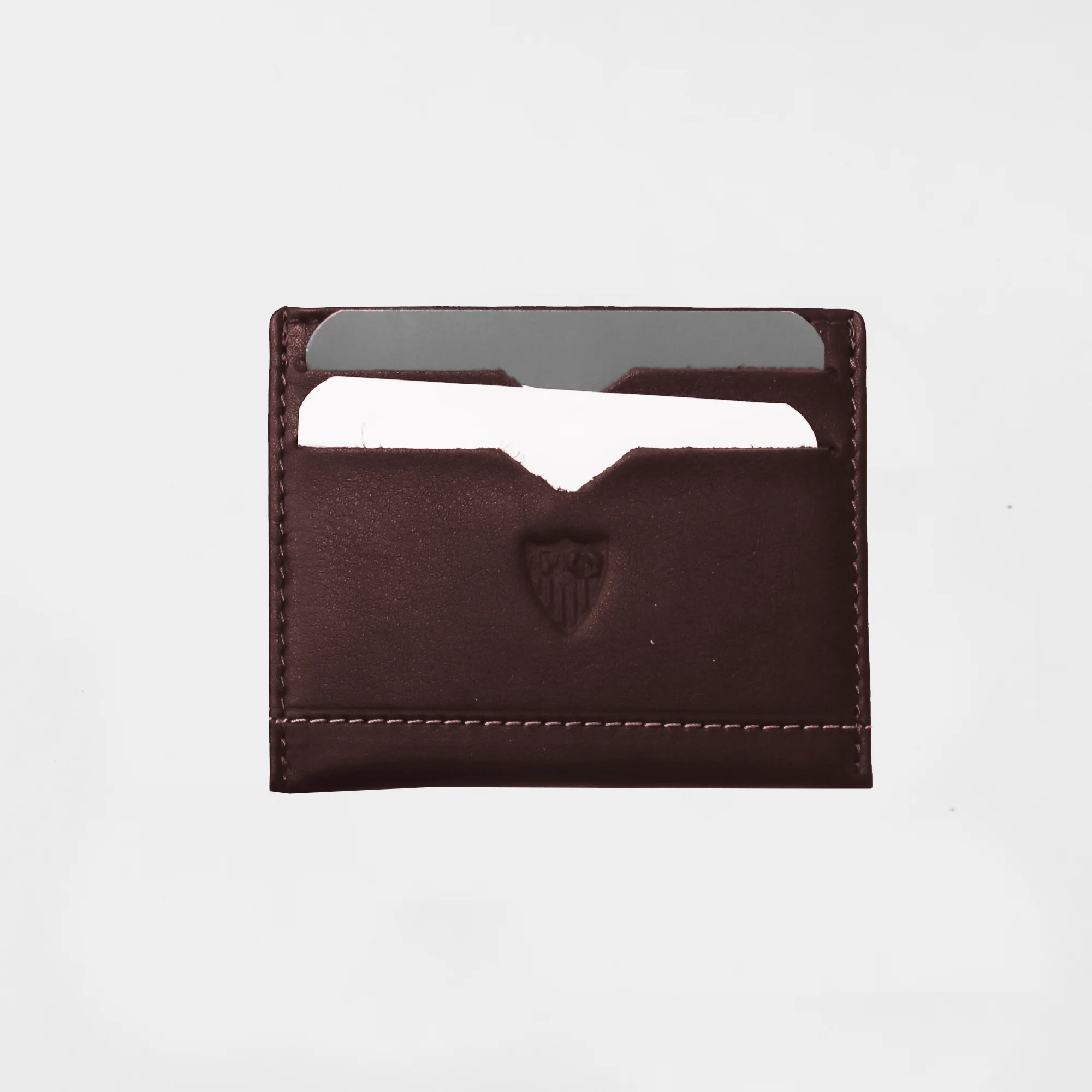 Tarjetero piel marrón del Sevilla FC.
