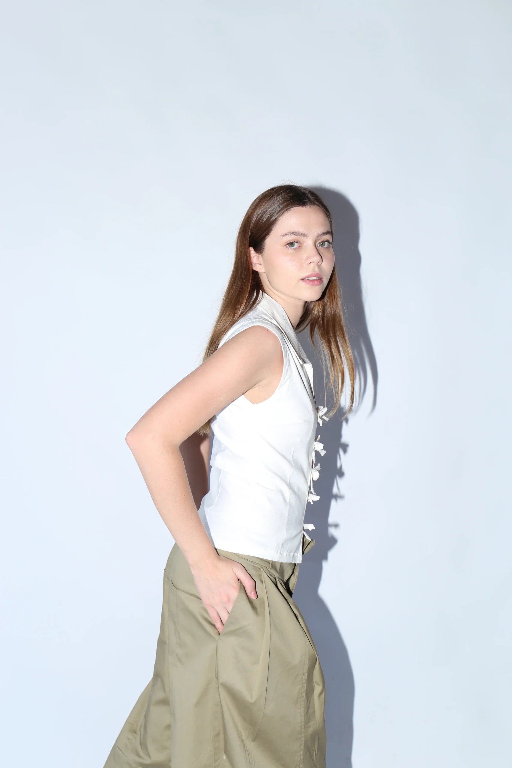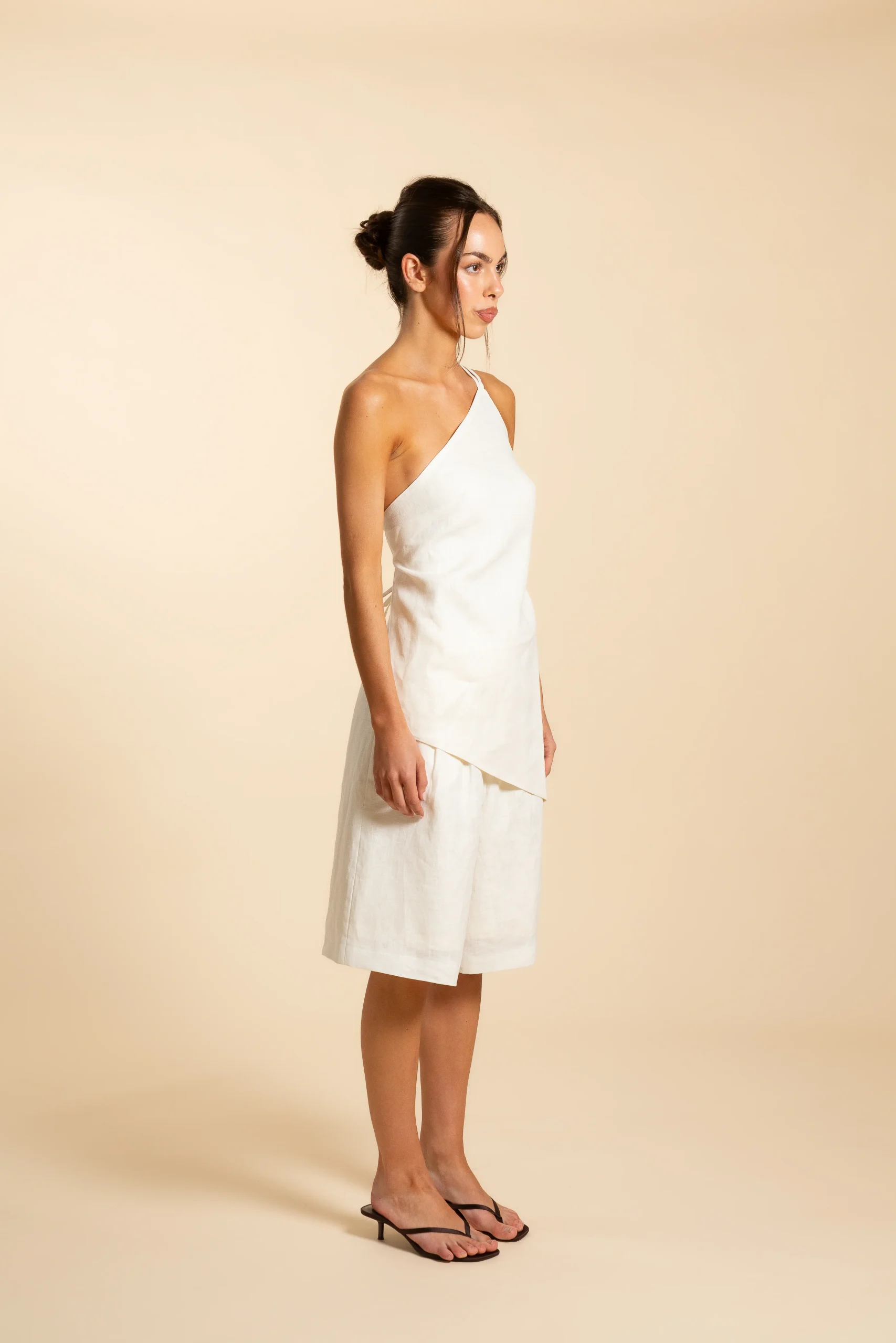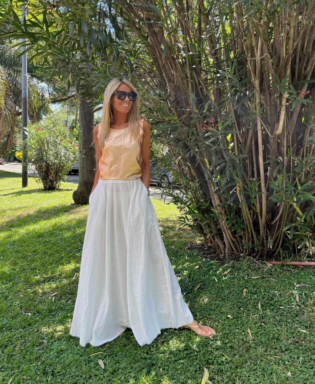 El top de lino ha sido diseñado para hacer match con todo tu armario y acompañarte este verano en todos tus planes desde las 8 AM hasta las 8 PM.