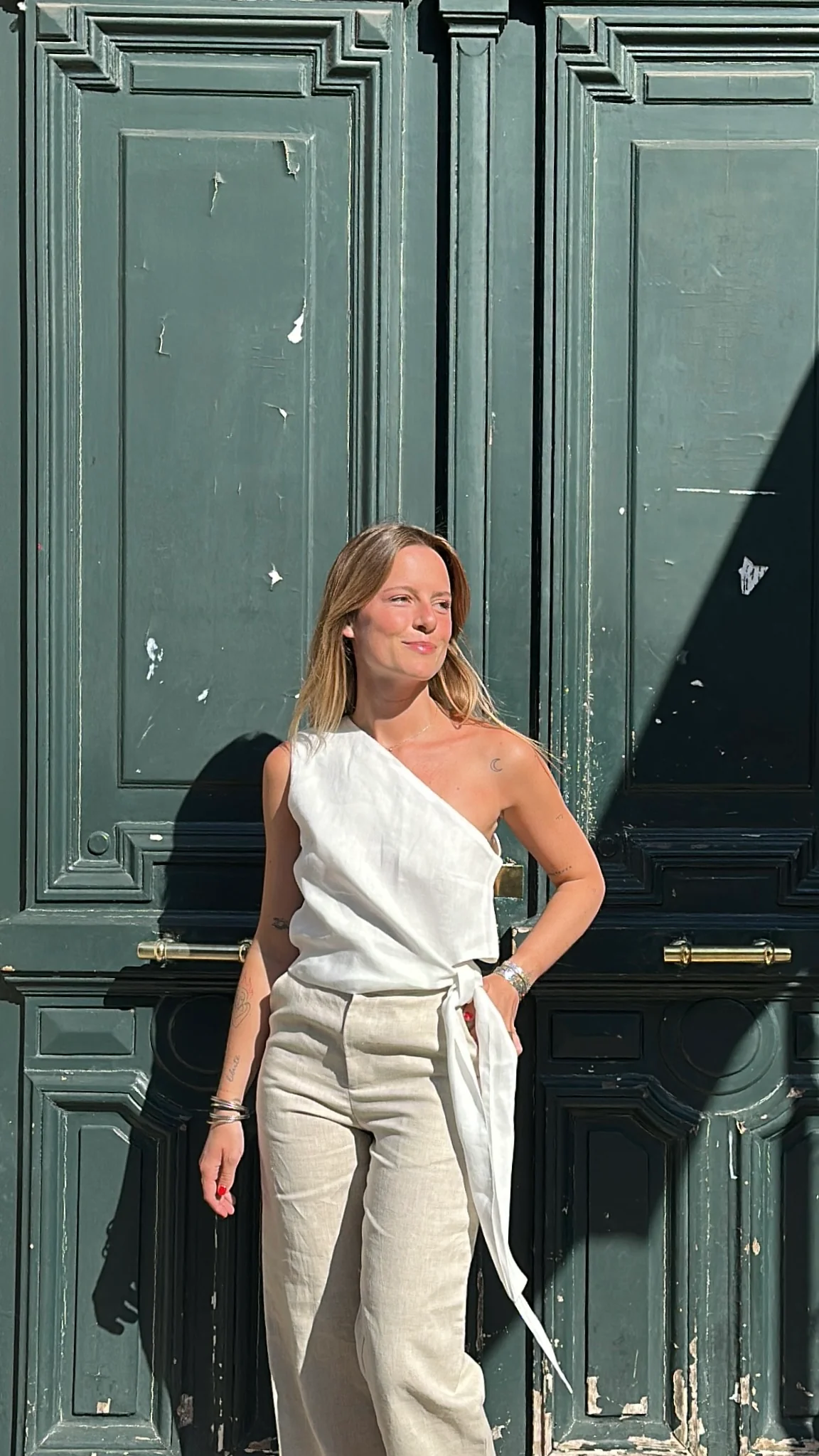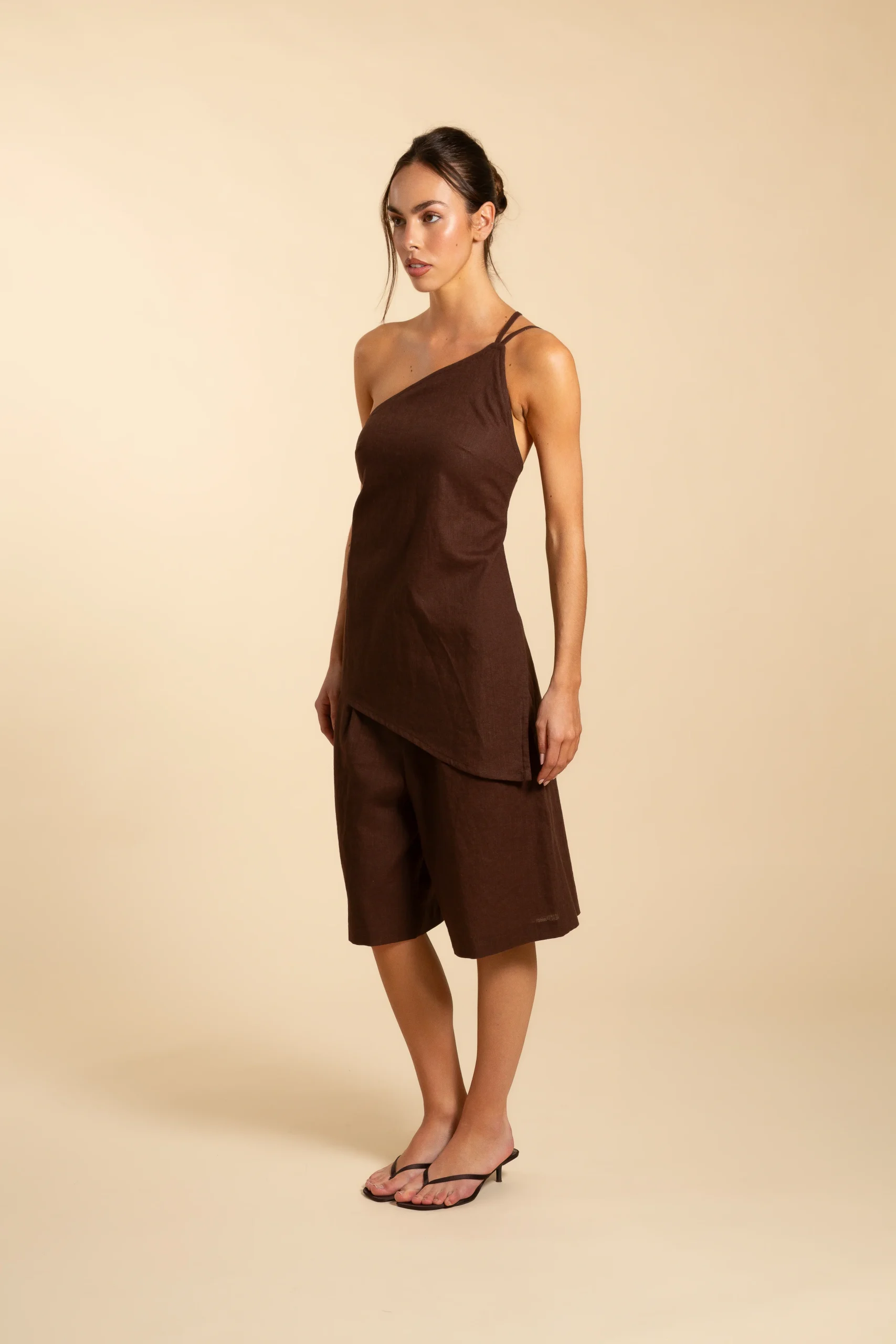 El top de lino ha sido diseñado para hacer match con todo tu armario y acompañarte este verano en todos tus planes desde las 8 AM hasta las 8 PM.