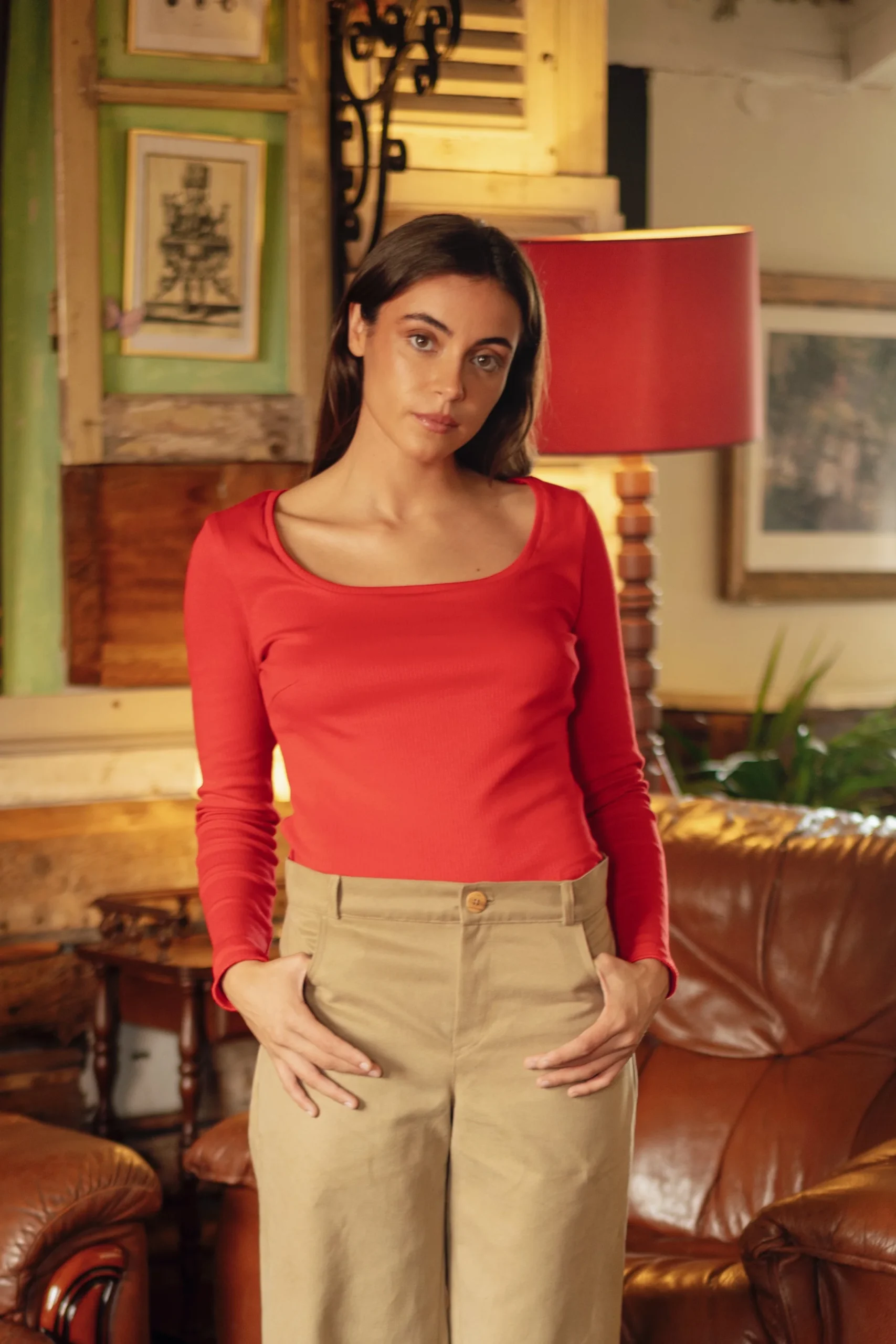 Una prenda imprescindible en cualquier armario. Tiene un tejido de algodón organico increÃblemente suave, un amplio cuello cuadrado, mangas largas y una silueta que queda ideal en cualquier cuerpo. Además, al ser una prenda 100% algodón orgánico tiene multiples beneficios en la piel.