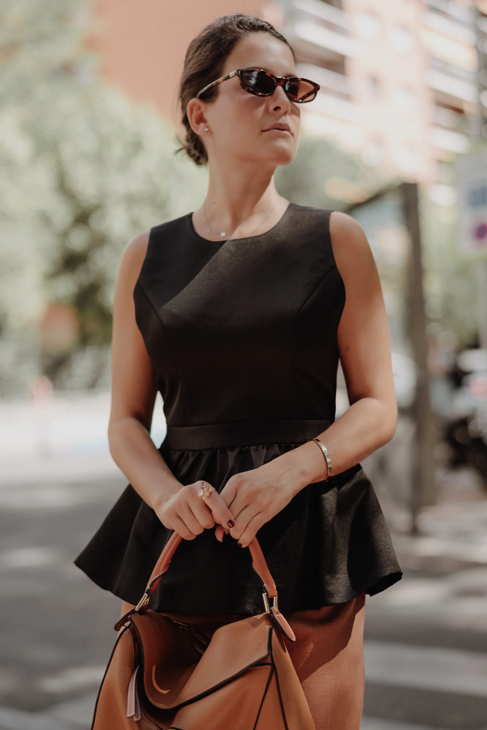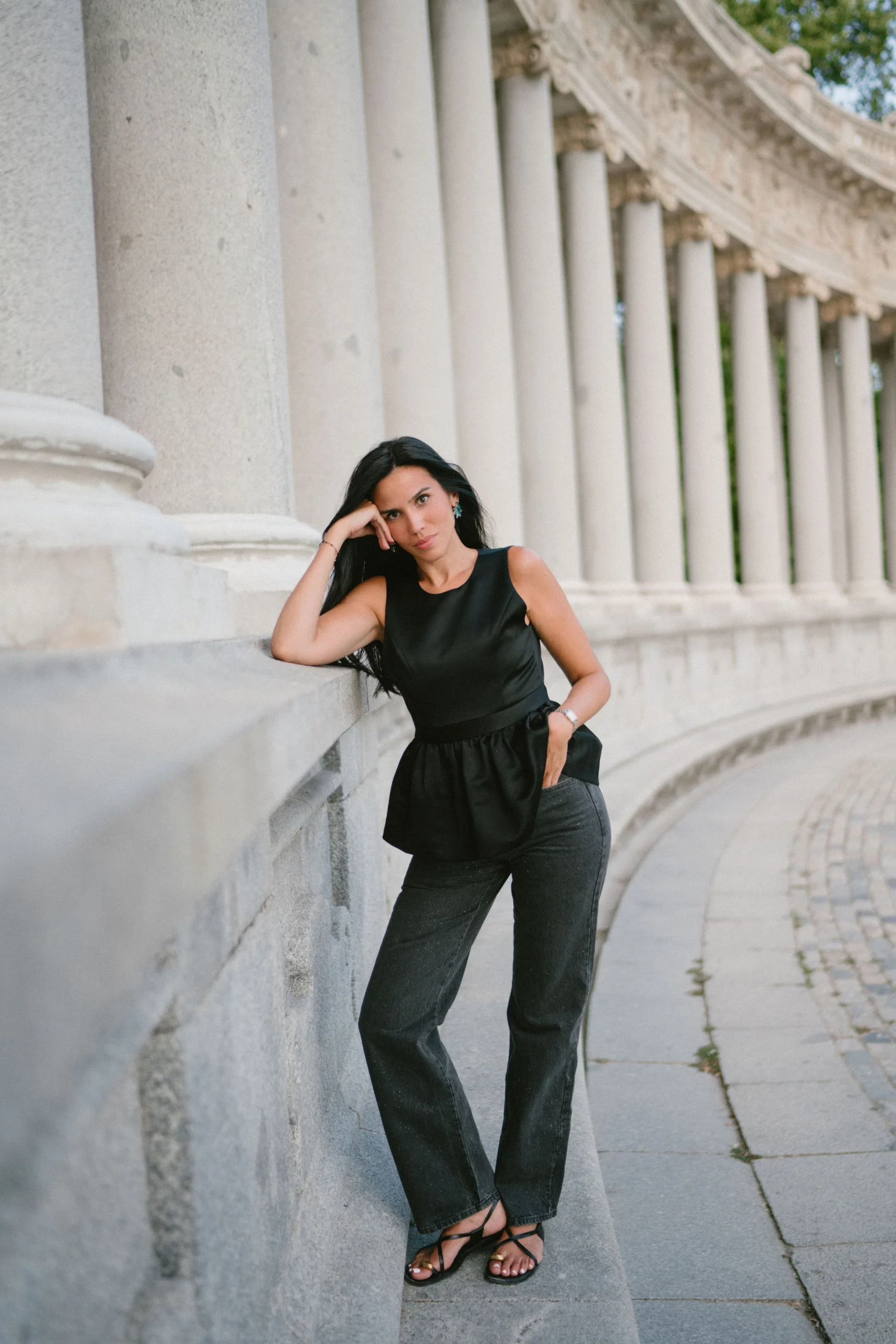 Nuestro Top combina una silueta sofisticada con el brillo sutil de la seda satinada, creando una prenda que resalta la belleza natural de cada movimiento. Su diseño entallado en la cintura y el volumen delicado en el bajo estilizan la figura sin renunciar a la comodidad.