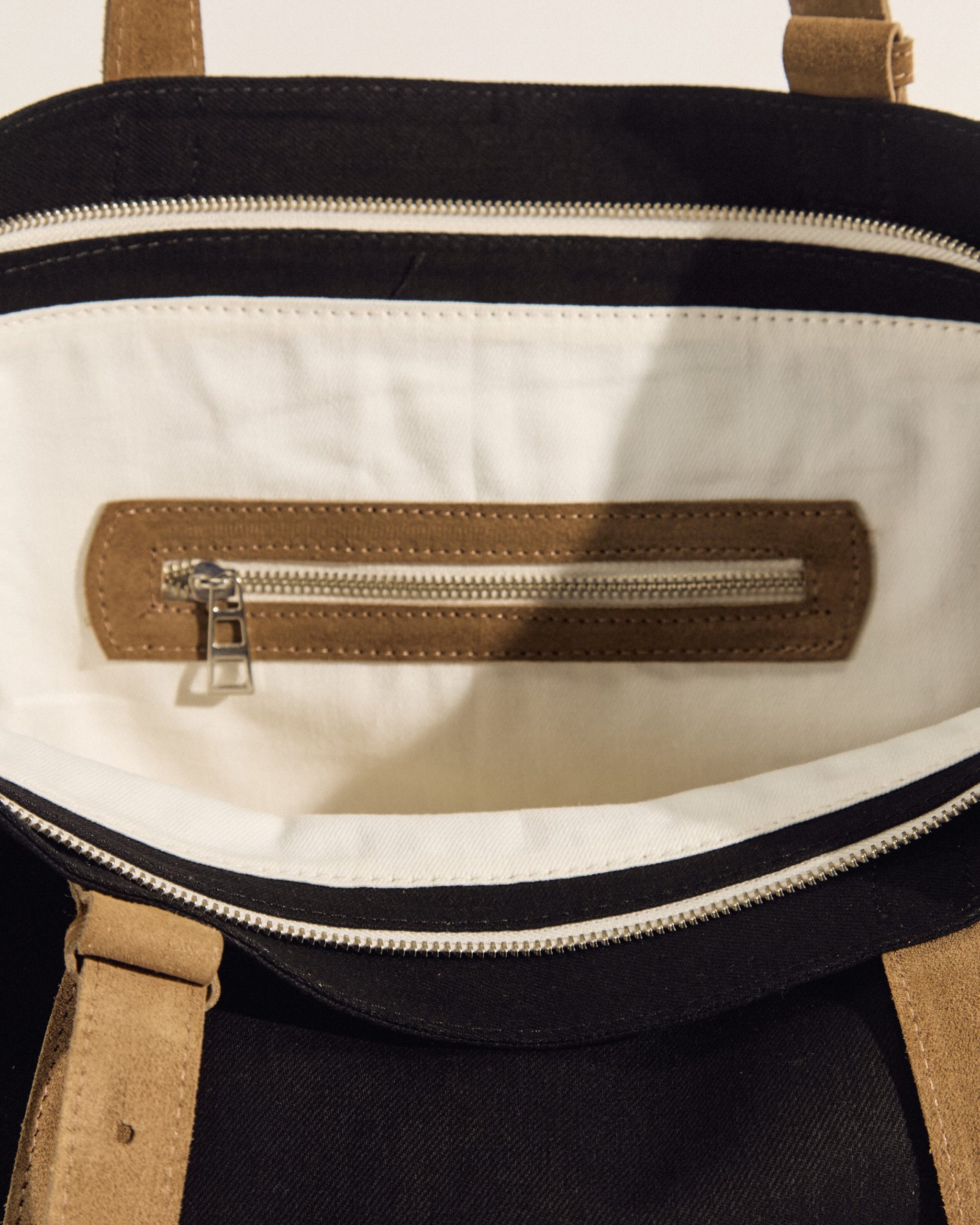 Contiene bolsillo interno y manijas regulable, confeccionada en gamuza.