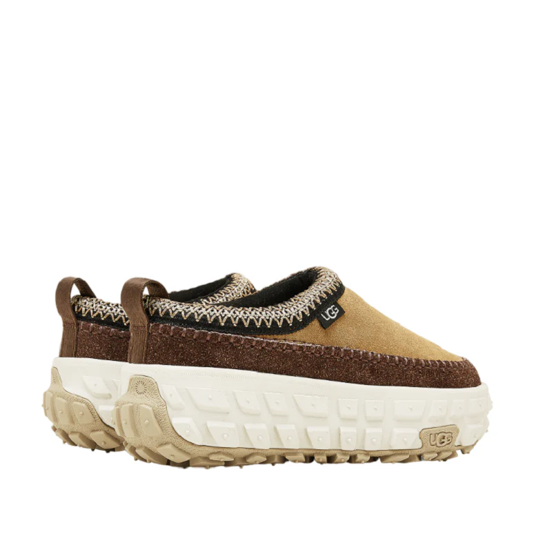 Los zuecos UGG Venture Daze para mujer combinan un diseño sofisticado con materiales de alta calidad. Su parte superior de ante ofrece durabilidad y suavidad, mientras que el acolchado interior garantiza confort durante todo el día. Incorporan una cincha UGGbraid de poliéster reciclado que aporta un detalle elegante y sostenible. El forro textil, elaborado con fibras 100% recicladas, mejora la transpirabilidad y reduce el impacto ambiental. La plantilla EVA SugarSole proporciona una pisada cómoda y ligera, completada con el distintivo logotipo de UGG para un acabado exclusivo.