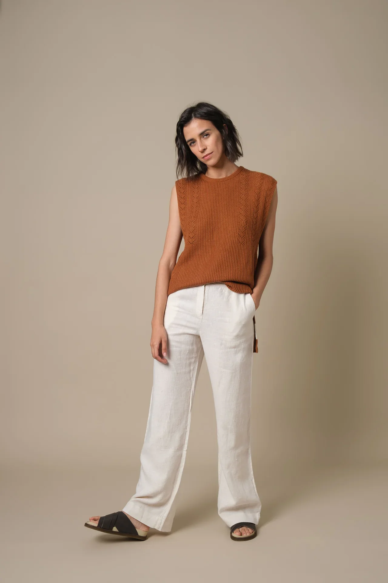Suéter sin mangas de algodón y cashmere, muy suave al tacto.