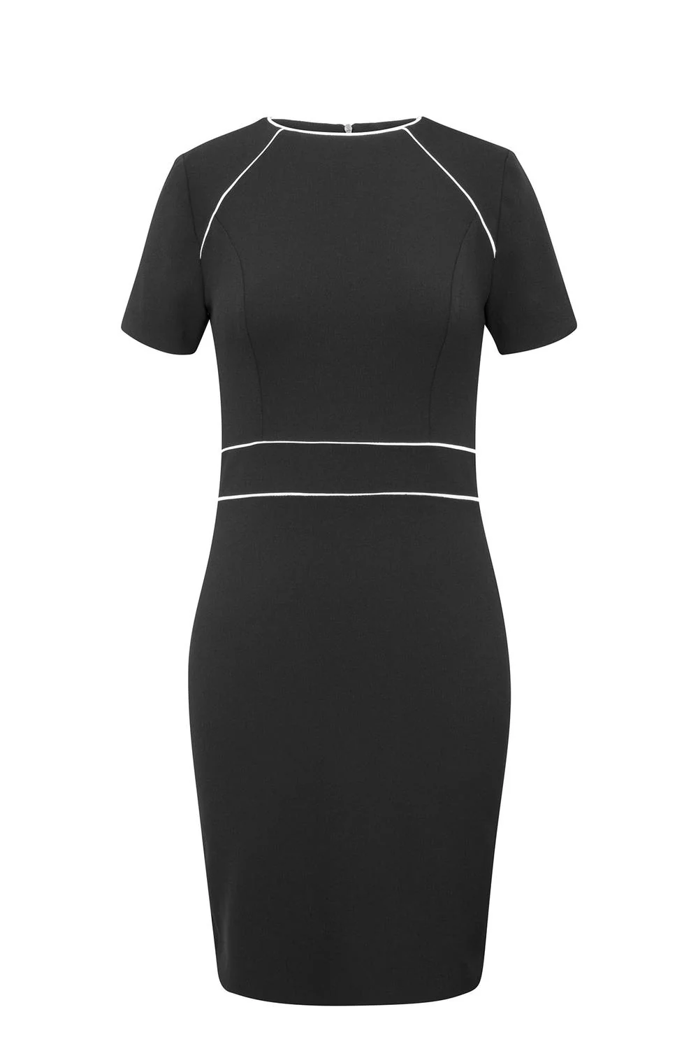 Vestido con cuello redondo, mangas cortas, cierre en espalda y piola a contraste. 20-1415