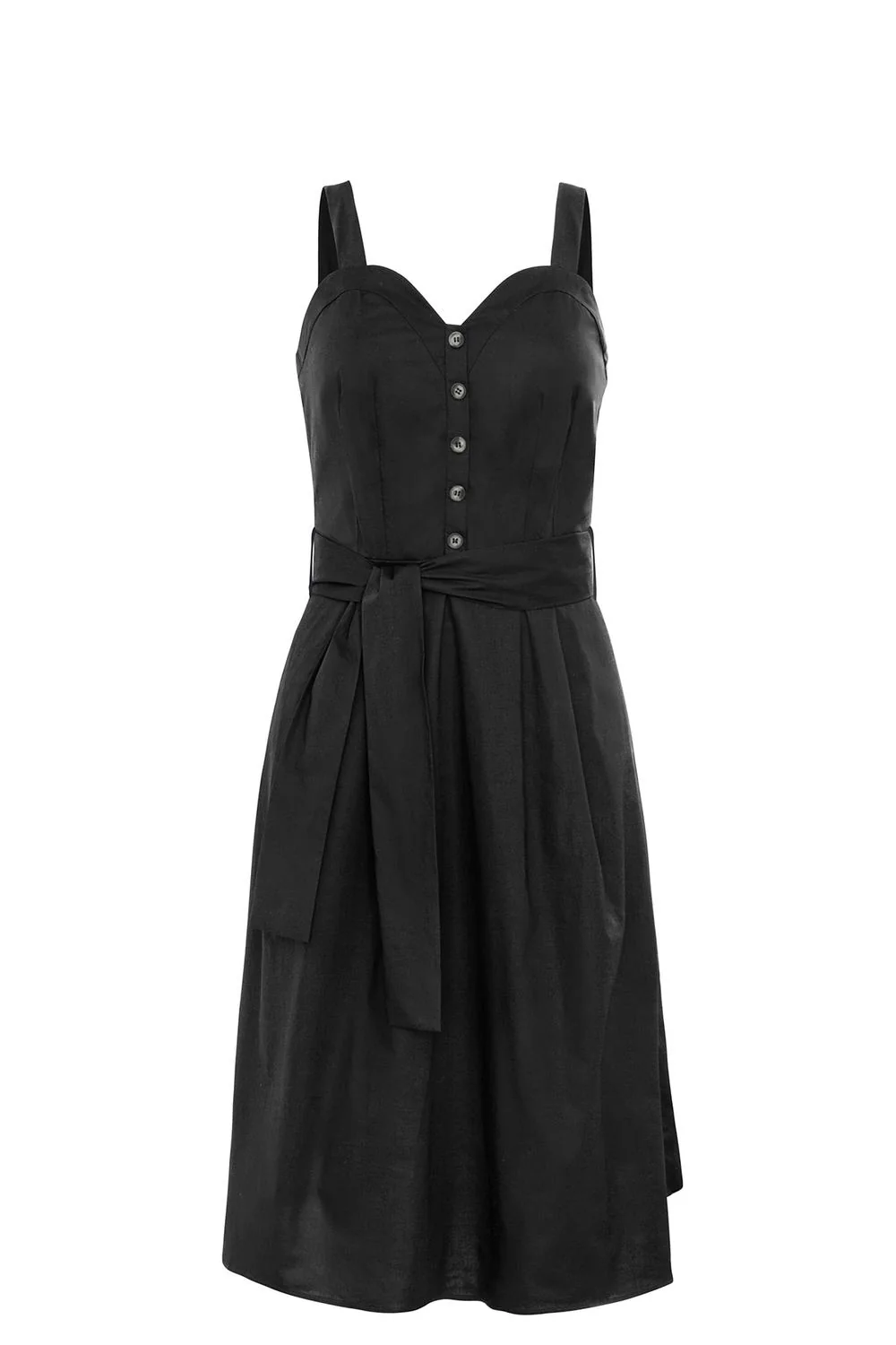 Vestido con tirantes anchos, escote en forma de corazón con botonadura en contraste y cinturón de la misma tela. Composición: 97% Algodón 3% Elastano prod. # 20-0758