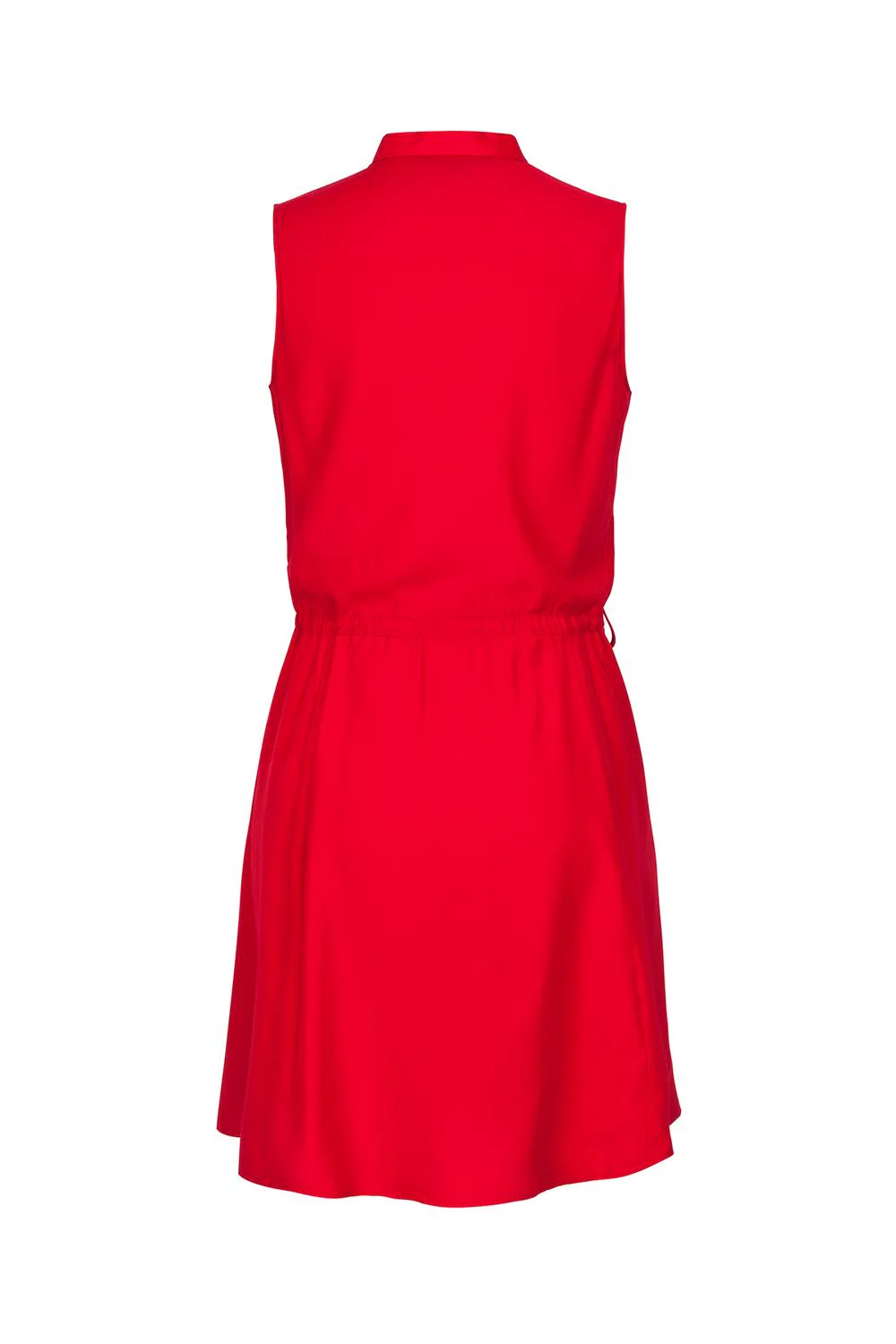 Vestido corto con escote «V», cuello tipo mao, jareta ajustable en cintura y falda semi-circular. Composición: 53% Poliéster 47% Viscosa prod. # 20-0748