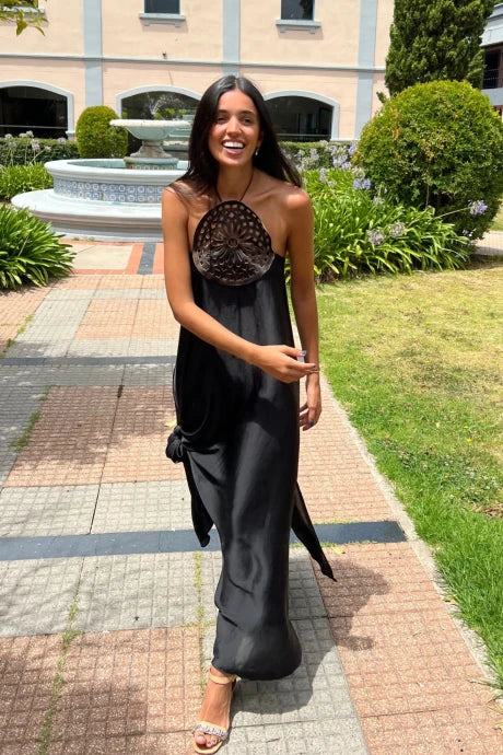 Este vestido es la combinación perfecta de suavidad y frescura. Confeccionado en sedita, ofrece un tacto ligero y elegante, mientras que su forrerÃa de algodón garantiza mayor comodidad y transpirabilidad. Ideal para cualquier ocasión, desde un paseo bajo el sol hasta una cena especial.