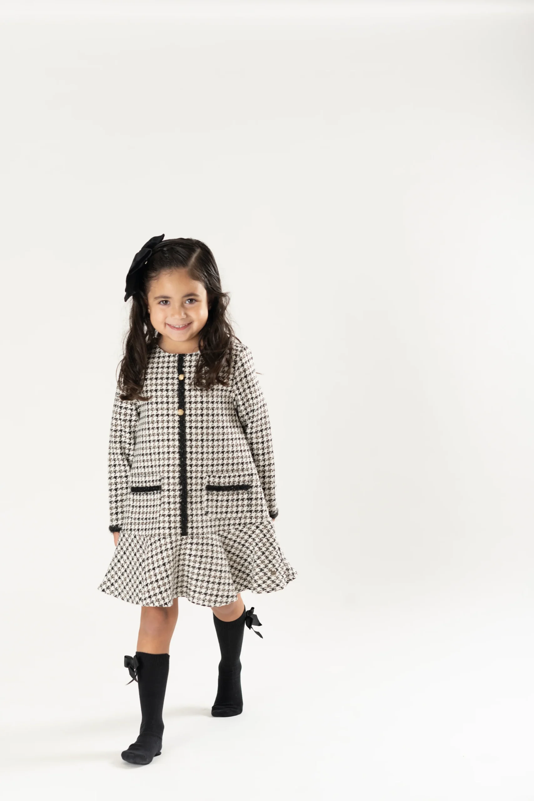 ¡Divino vestido de tela de cuadros! ¡Luce bellísima con este vestido, con detalles que lo hacen lucir elegante! De cuello redondo, manga larga, con detalle en la orilla de la manga, centro y bolsillos frontales de linea negra, bolsillos frontales funcionales y cierre de zíper por atrás para una puesta fácil y rápida.