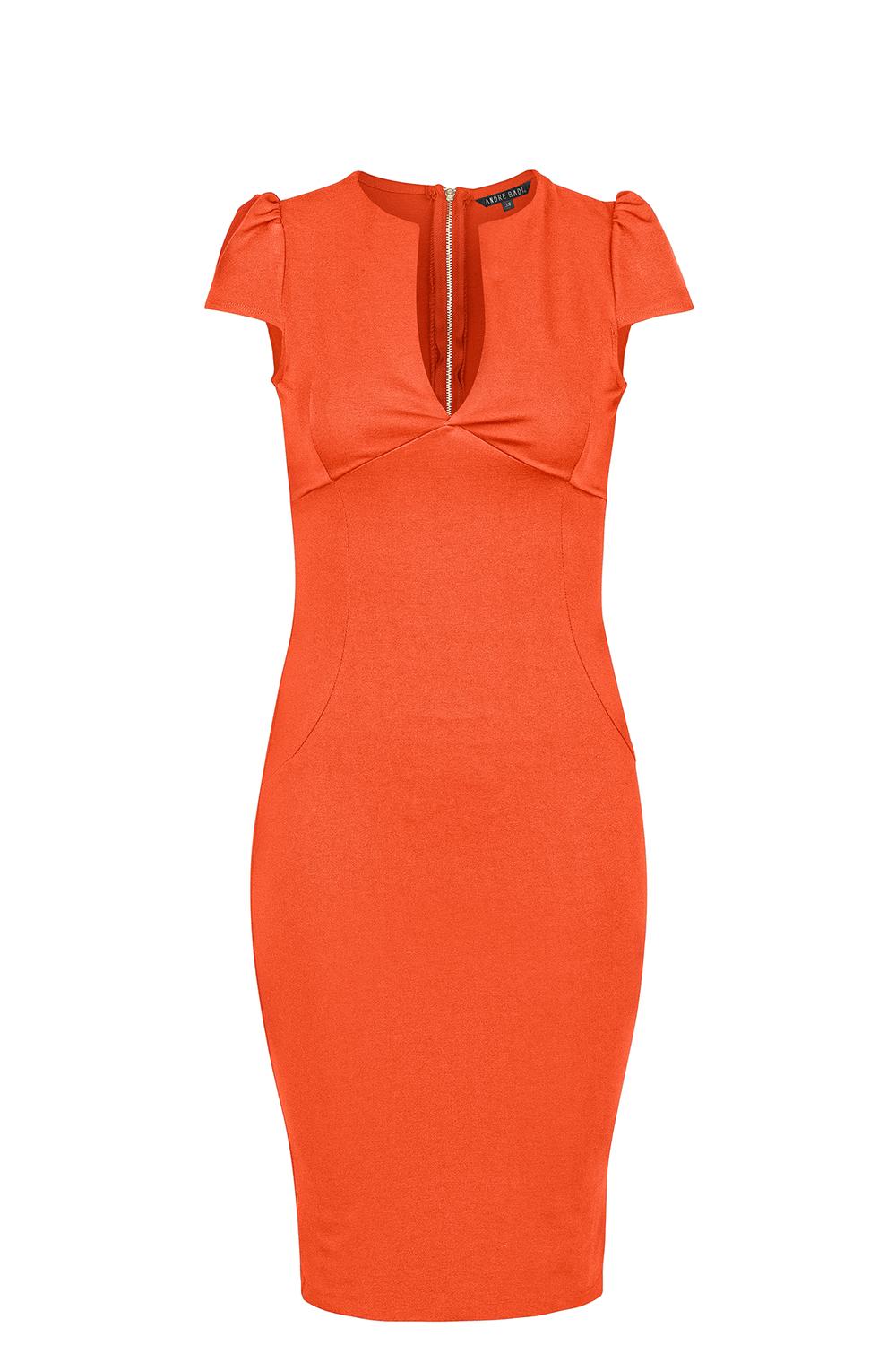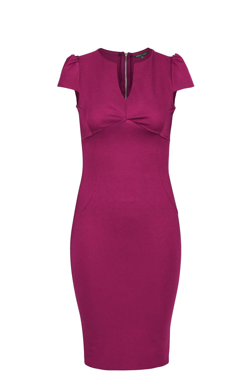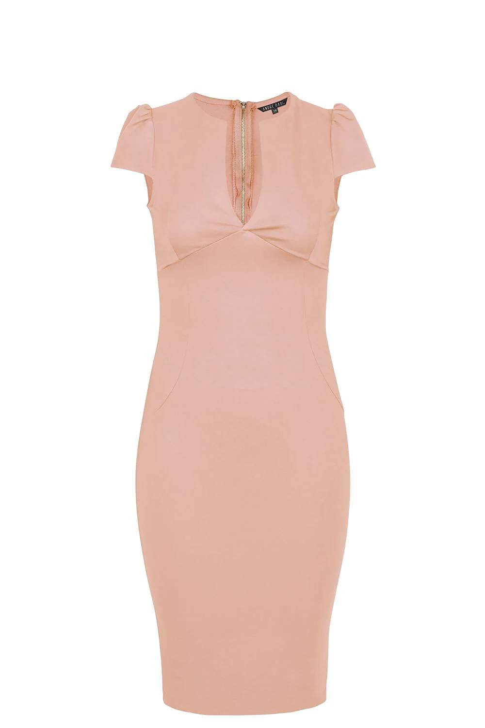 André Badi Vestido ajustado con escote al frente, corte en bajo busto y mangas cortas. Composicion66% Viscosa 30% Poliamida 4% Elastano Modelo 20-0532
