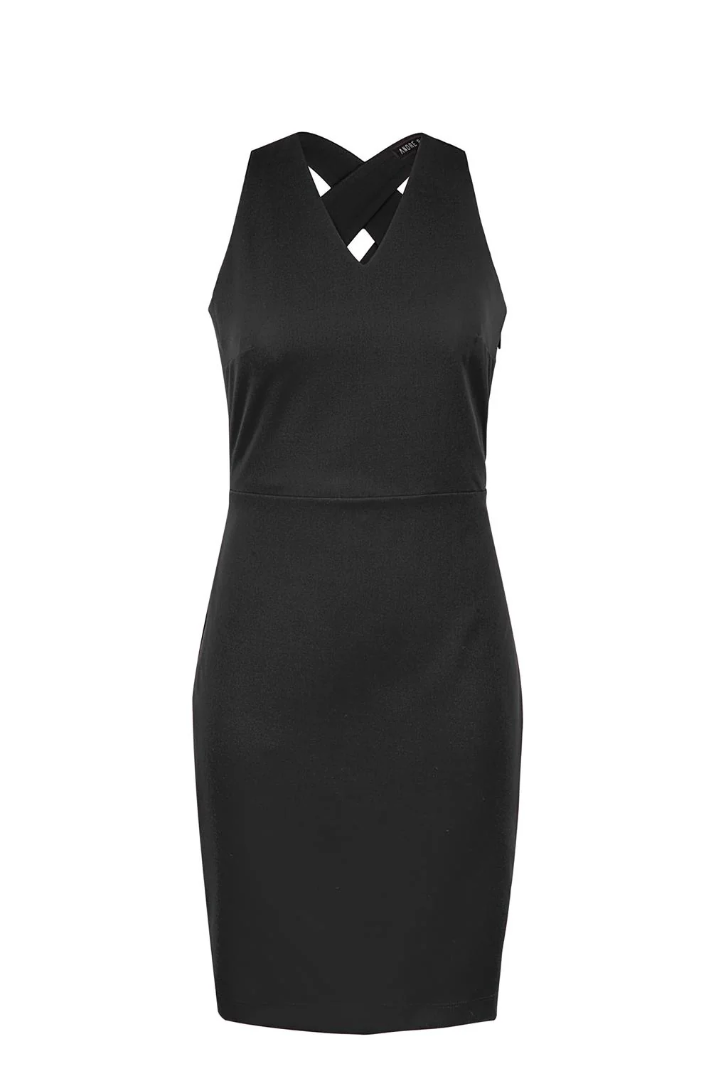 Vestido ajustado con escote «V» frontal, detalle de tiras cruzadas en espalda y cierre invisible al costado. prod. # 20-0704