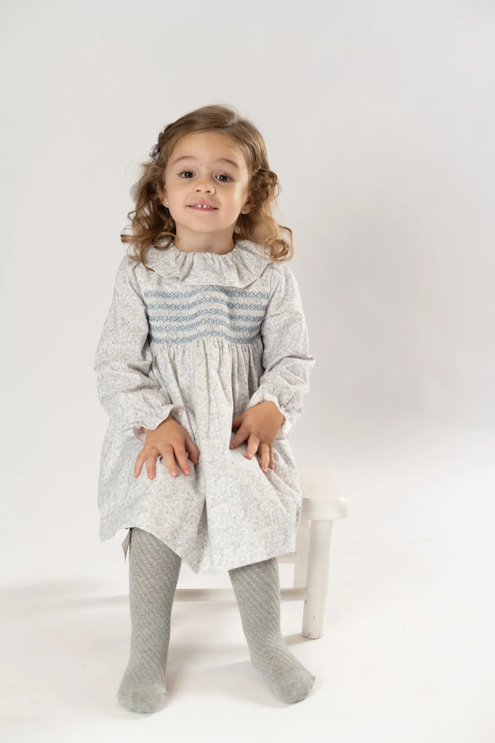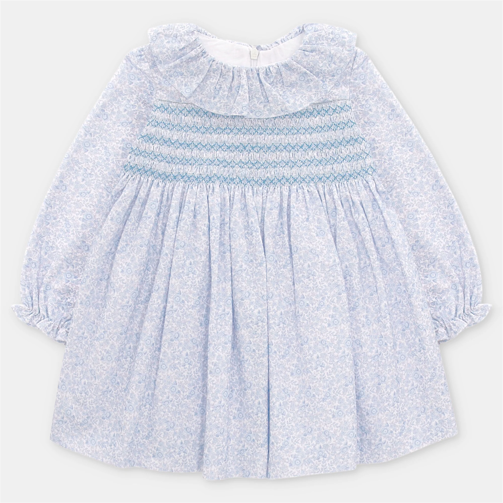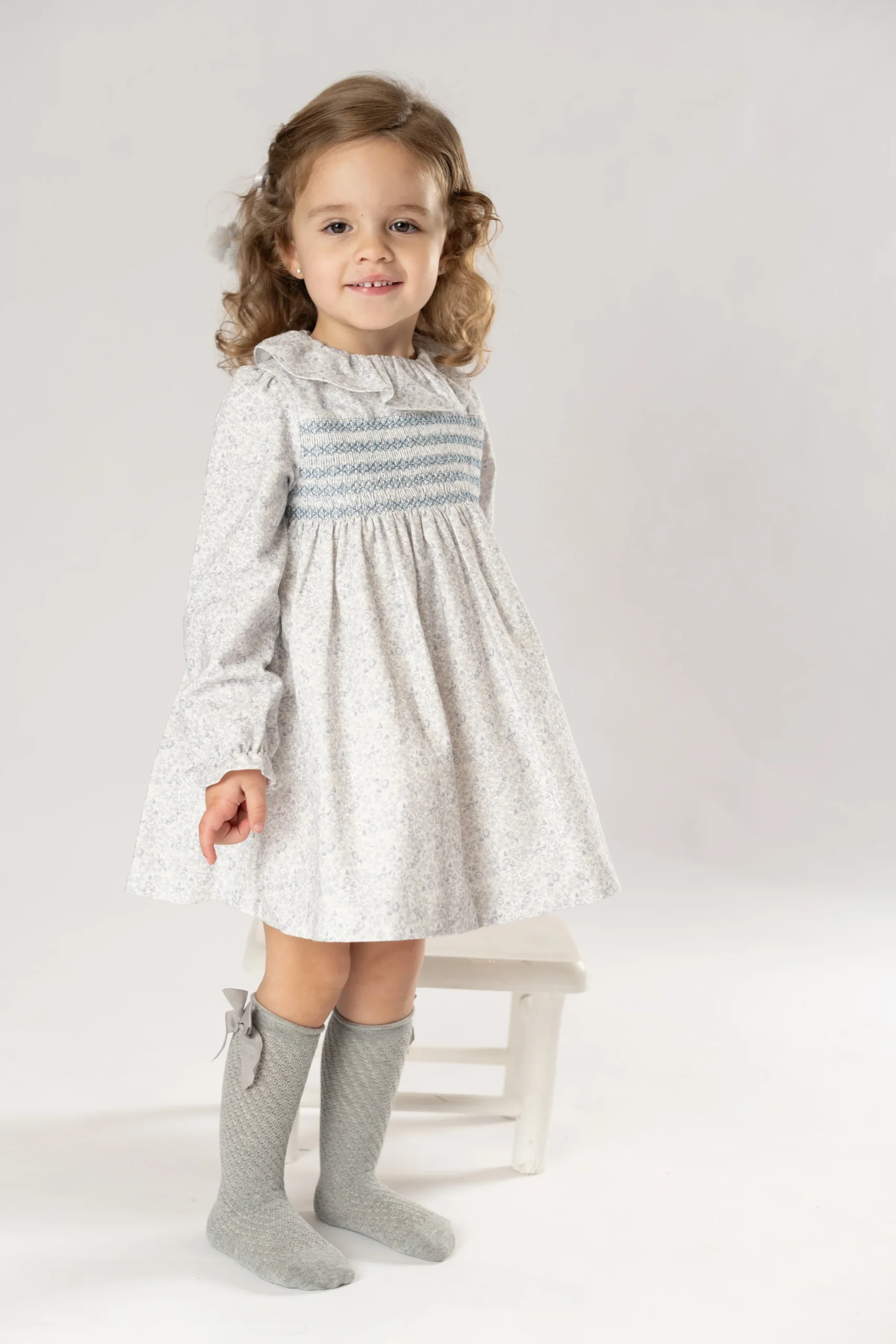 ¡Hermoso vestido de estampado con detalle de smock! ¡Un vestido basico para el guardarropa de las niñas, ya que es una prenda muy versatil pensada para cualquier ocasion! Vestido de cuello redondo con olan, manga larga con elastico, smock en el pecho, cierre de ziper por atras para facilitar su puesta.