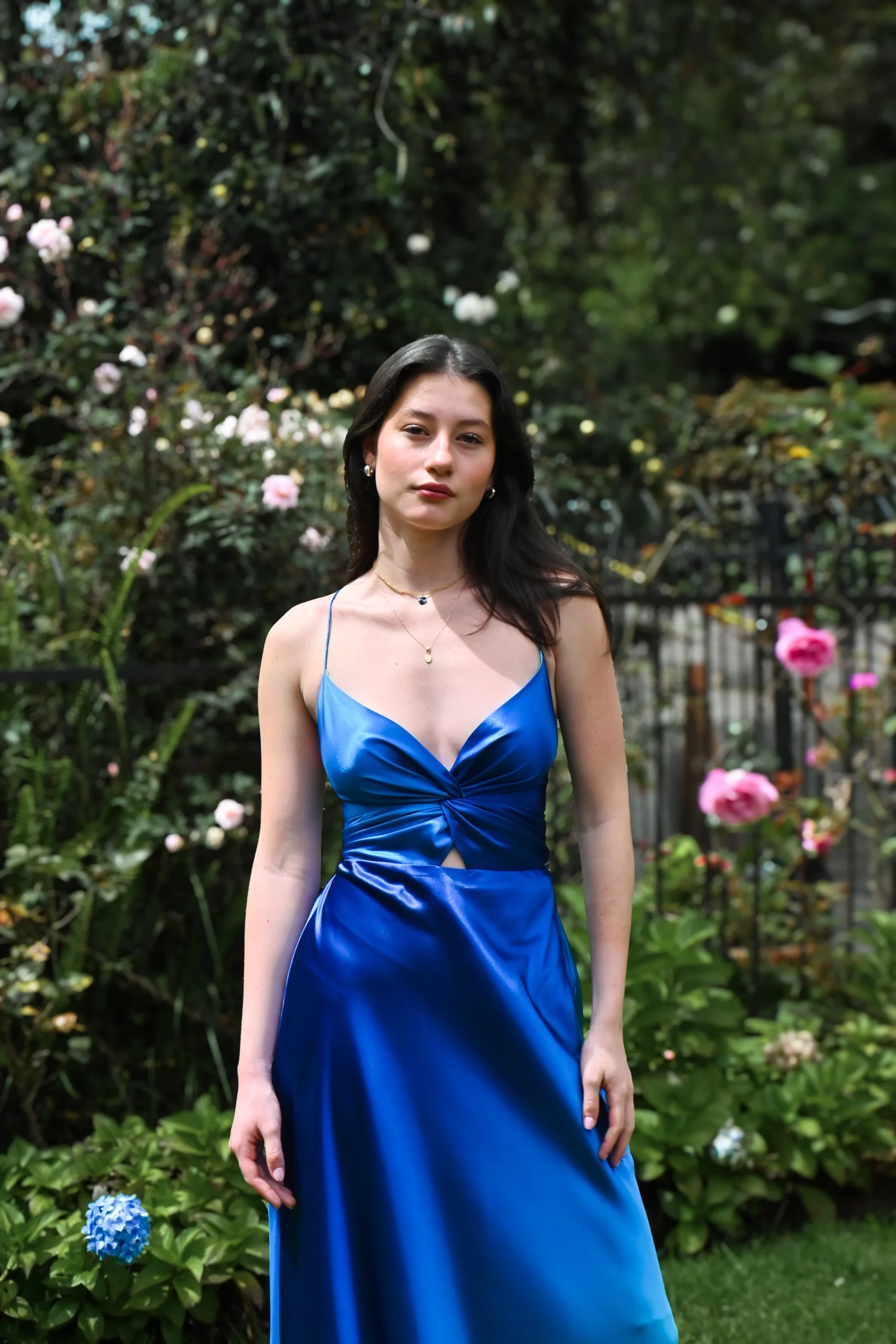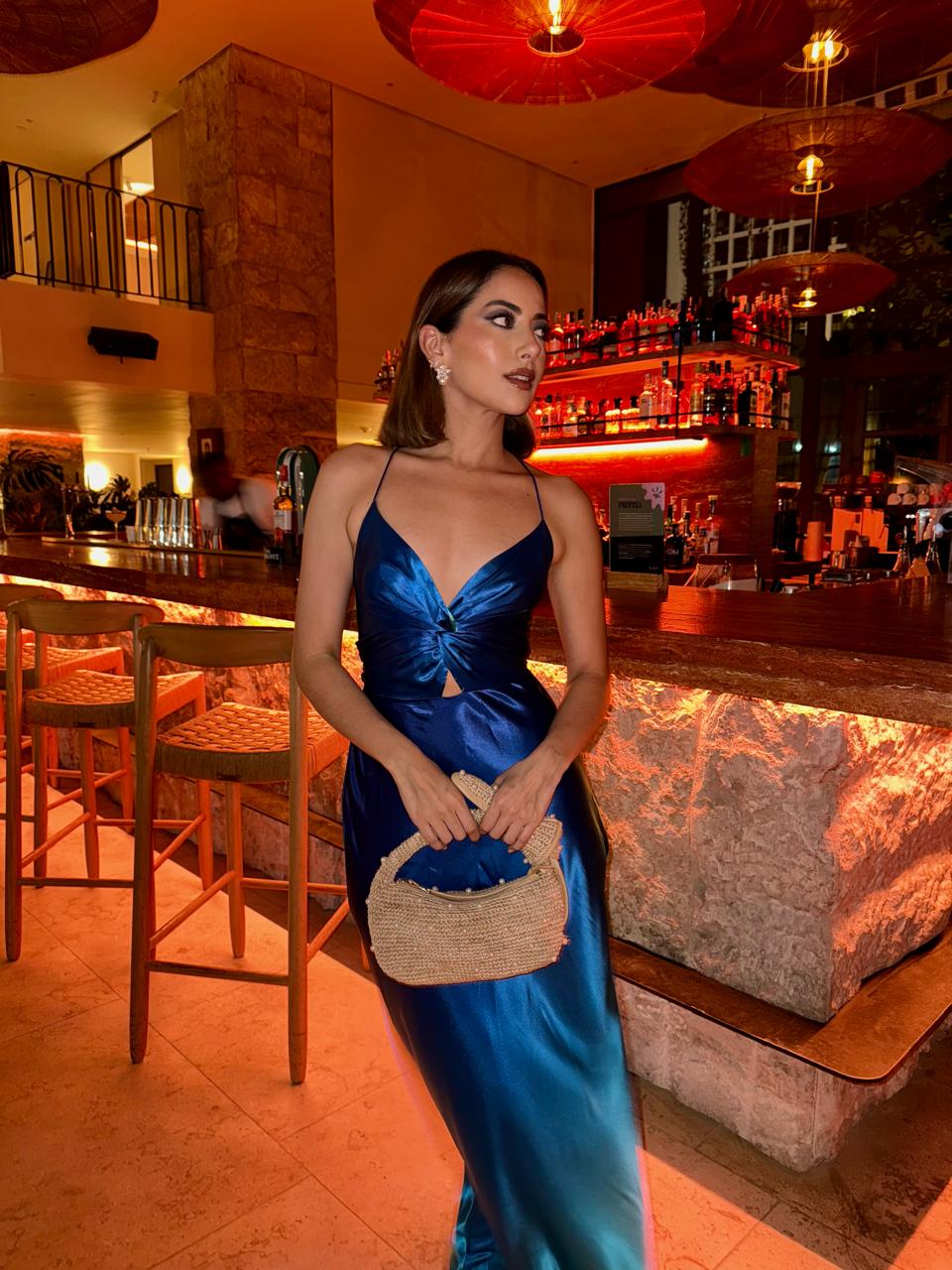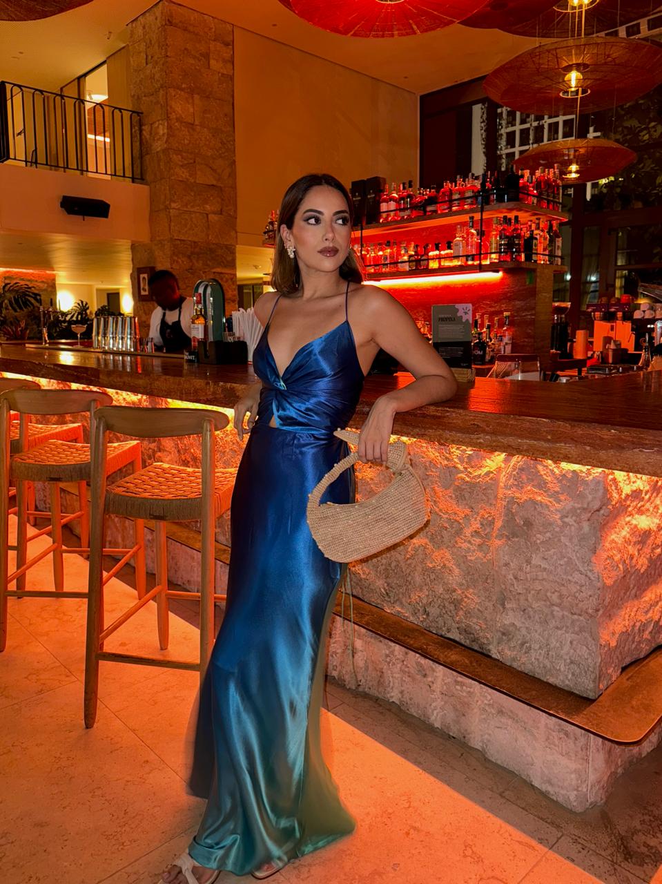 Vestido largo elegante para fiesta o matrimonio en playa con tiras ajustable en la espalda en tela seda/poliéster.