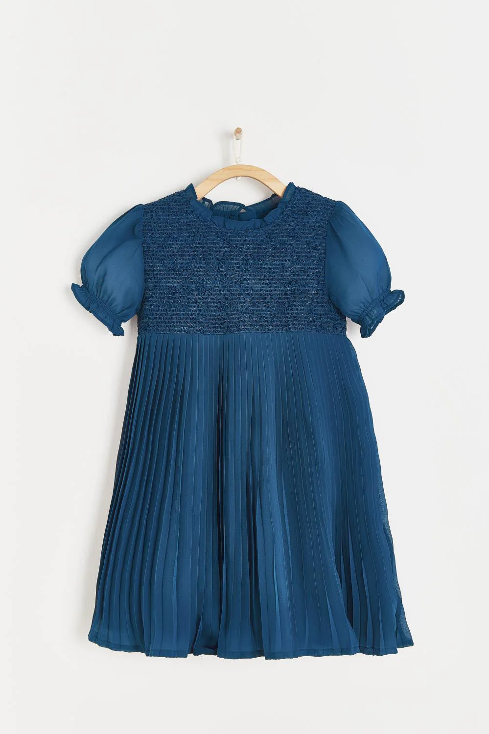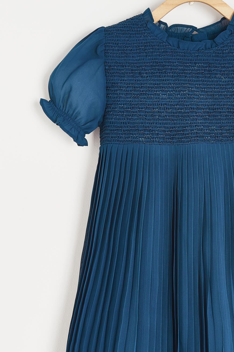 ¡Divino y elegante vestido de gasa que proporciona comodidad y frescura para disfrutar de cualquier actividad con libertad de movimiento! ¡Vestido pensado para las ocasiones mas especiales! De manga corta con elastico para un efecto bombacho, cuello redondo con olan en la orilla, smock en el pecho, cierre de ziper por la parte trasera para facilitar su puesta.