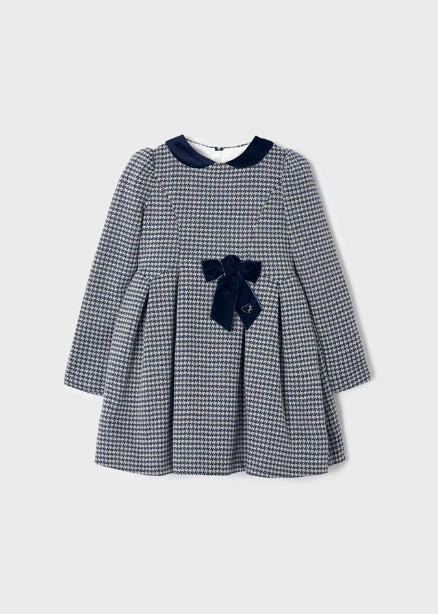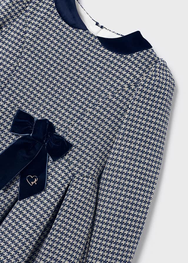 ¡Divino vestido de tela de cuadros! ¡Luce bellísima con este vestido, con detalles que lo hacen lucir elegante! De cuello camisero redondo de terciopelo, manga larga, corte en la cadera con detalle de lazo en terciopelo y cierre de zíper por atrás para una puesta fácil y rápida.
