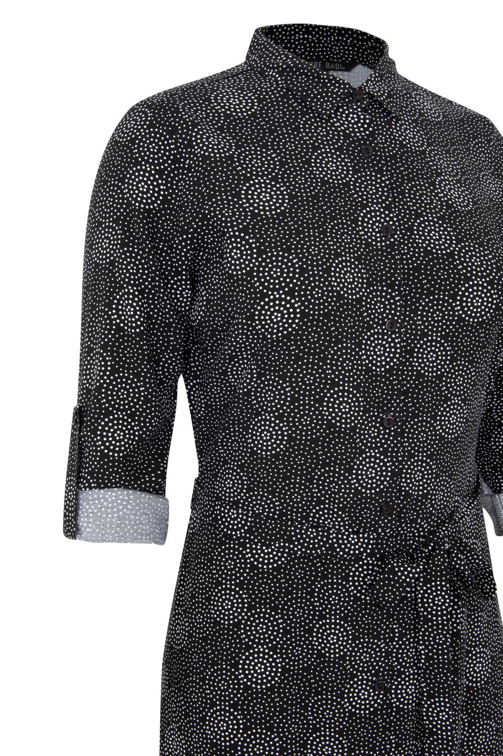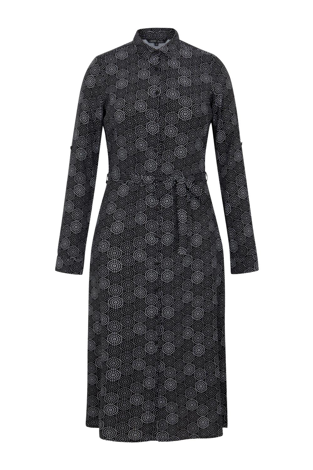 André Badi Vestido estampado con largo midi, cuello camisero, aletilla frontal, mangas largas, elevadores ocultos, aberturas en los costados del ruedo y lazo en cintura. Composicion100% Viscosa Modelo 20-1332
