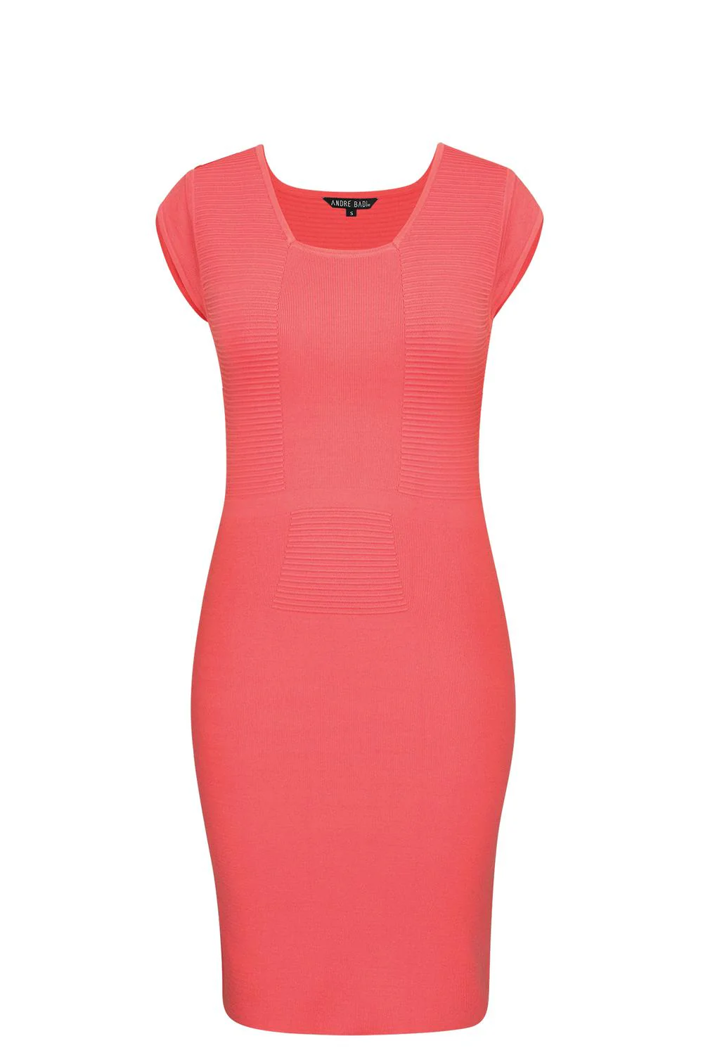 Vestido de punto labrado, ajustado, con cuello cuadrado y manga corta. 78% Viscosa 18% Poliamida 4% Elastano prod. # 20-0323