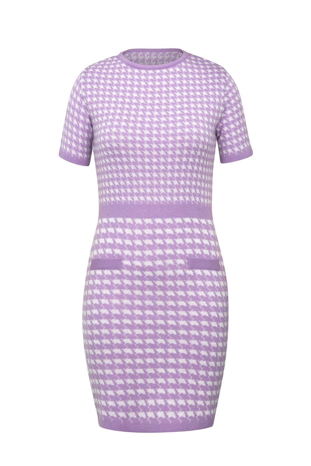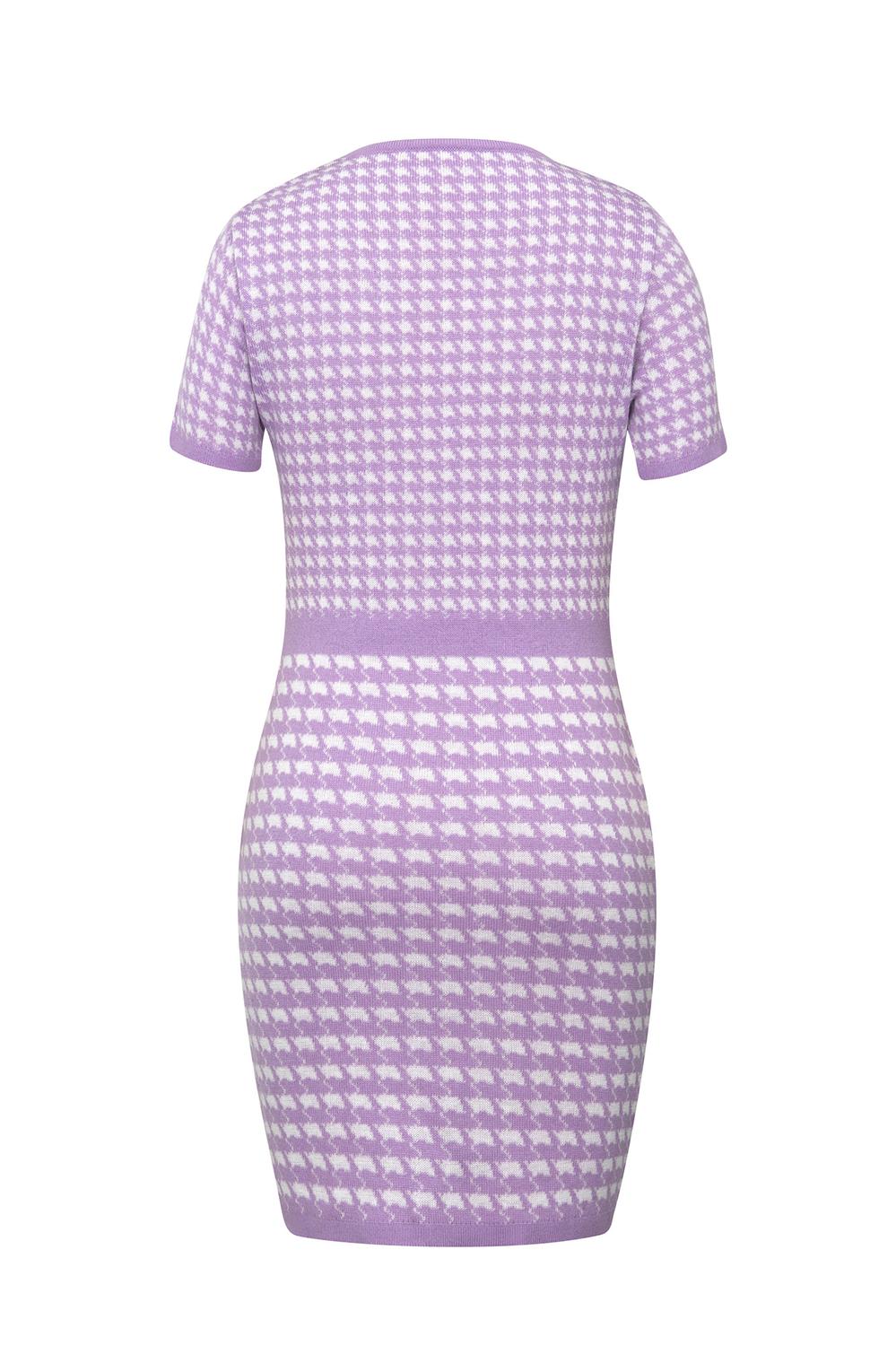 Vestido corto con estampado tipo pata de gallo, mangas cortas y simulación de bolsillos frontales. 20-0899