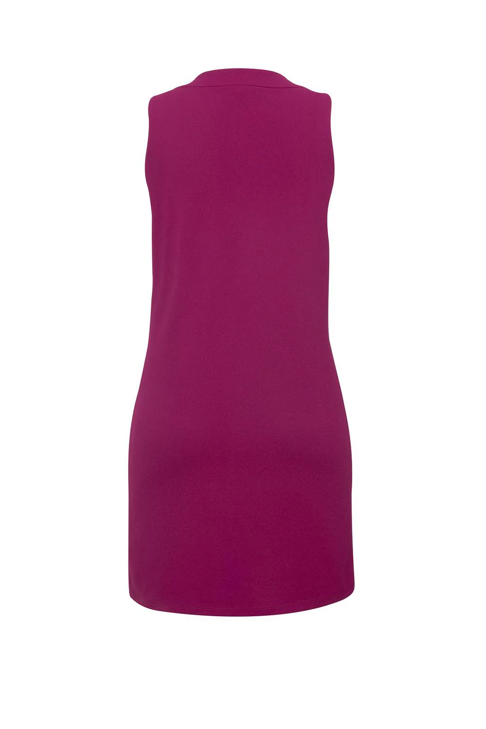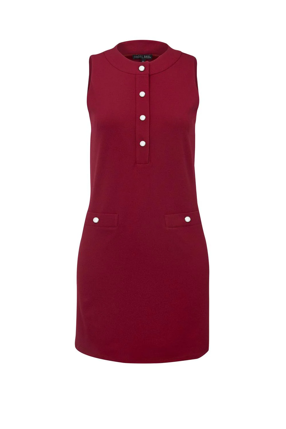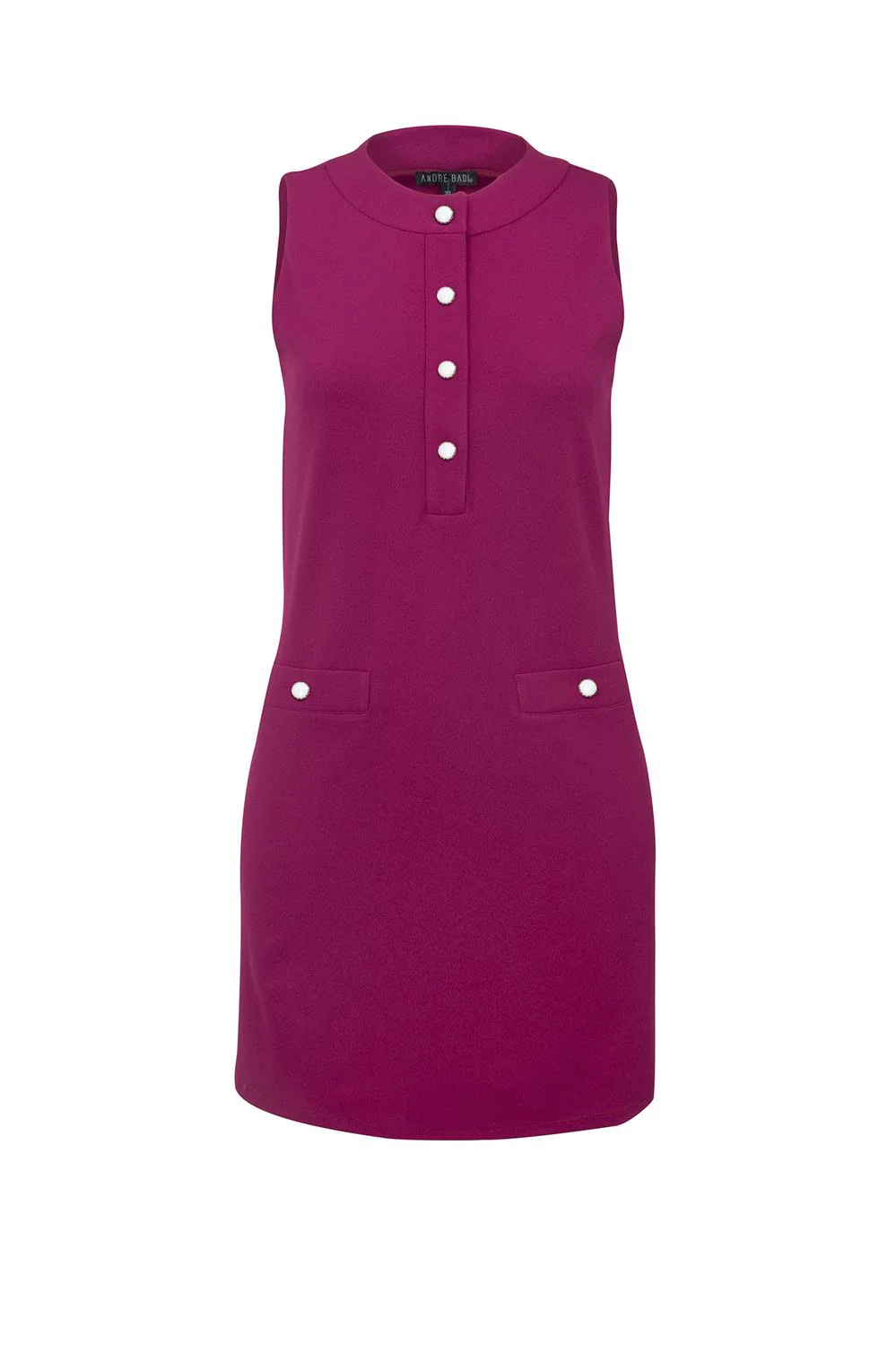 Vestido recto sin mangas con escote redondo, carteras decorativas y botones a contraste. Código de producto 20-0897