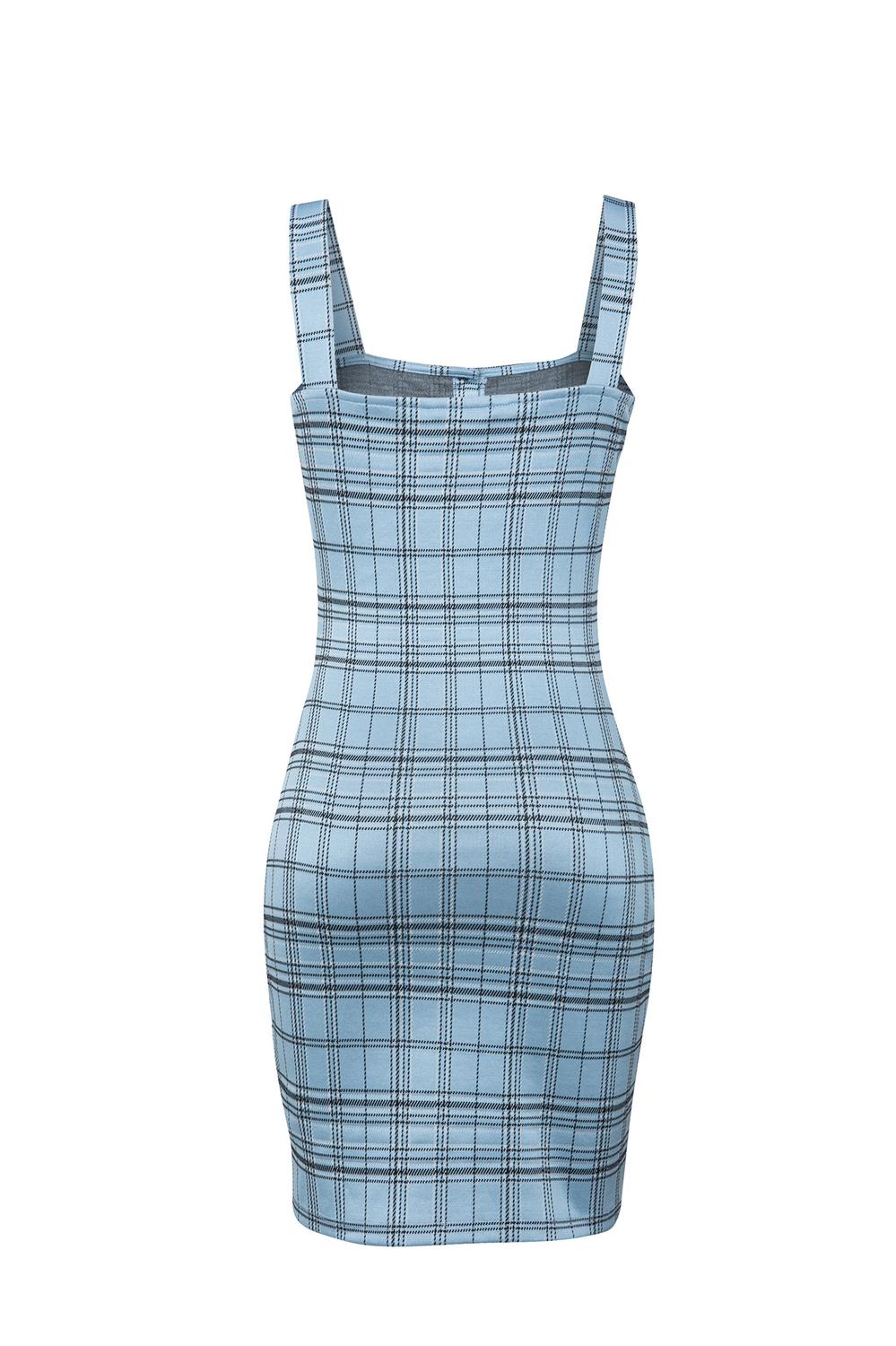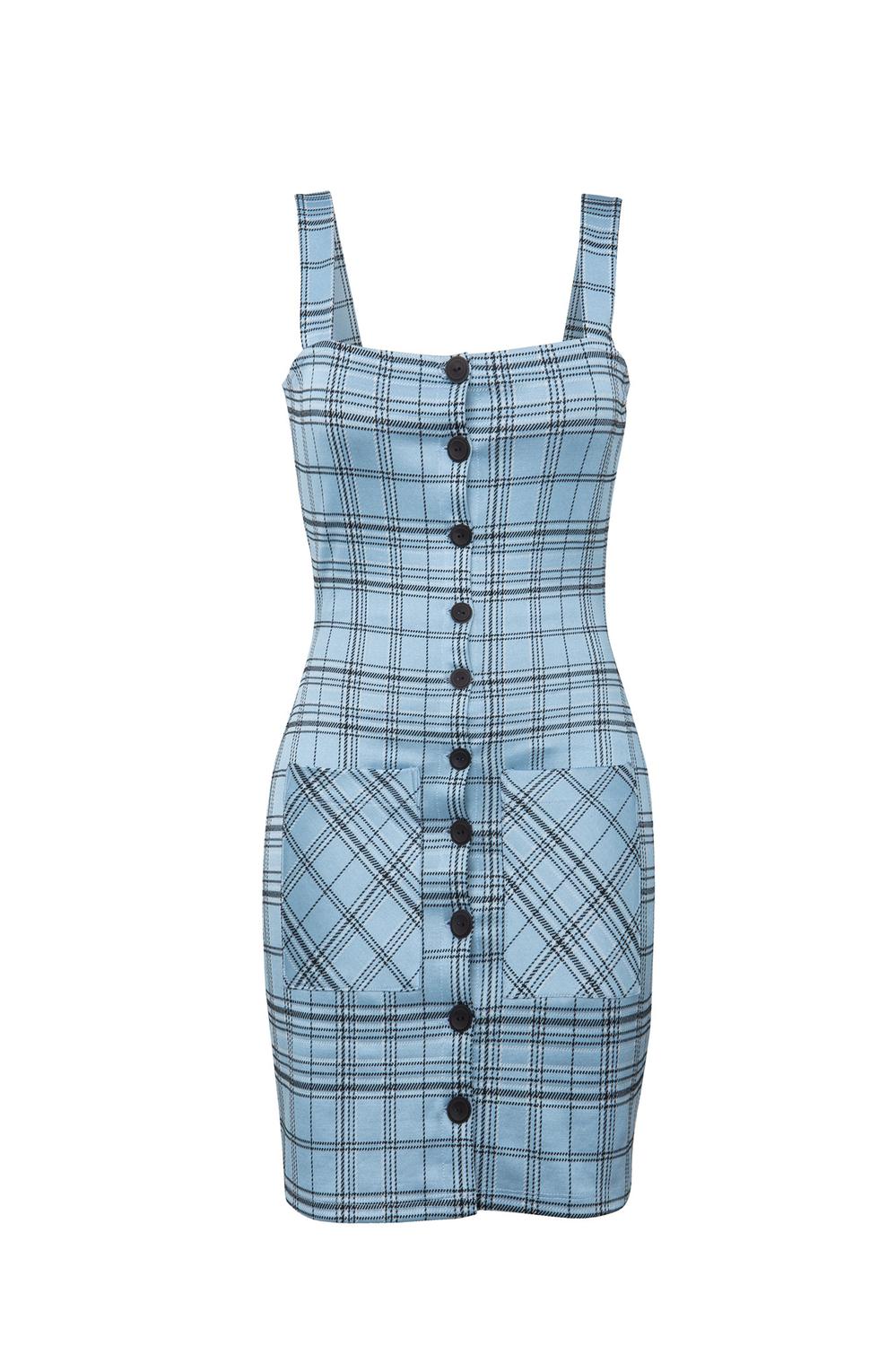 Vestido corto estampado de tirantes anchos, aletilla, botonadura y bolsillos tipo parche. 20-0907