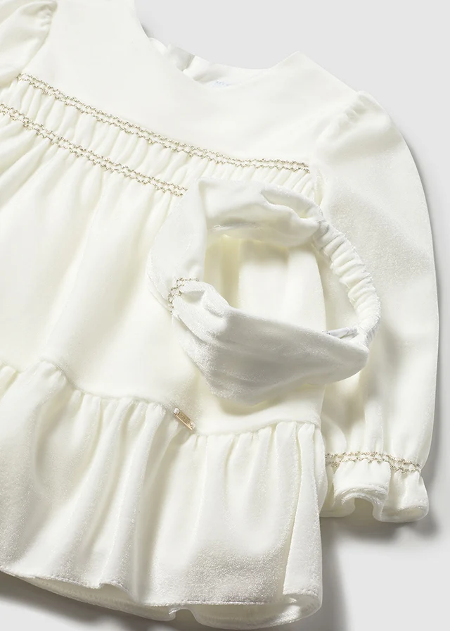 Vestido terciopelo con diadema crudo