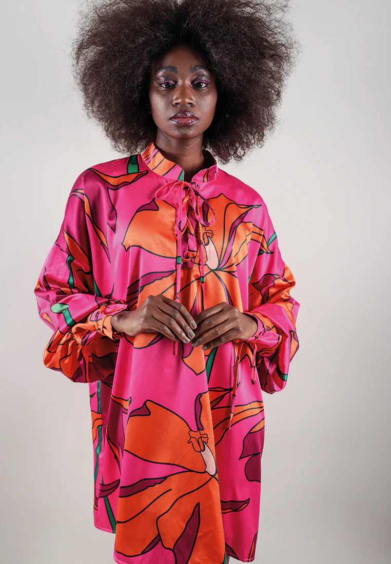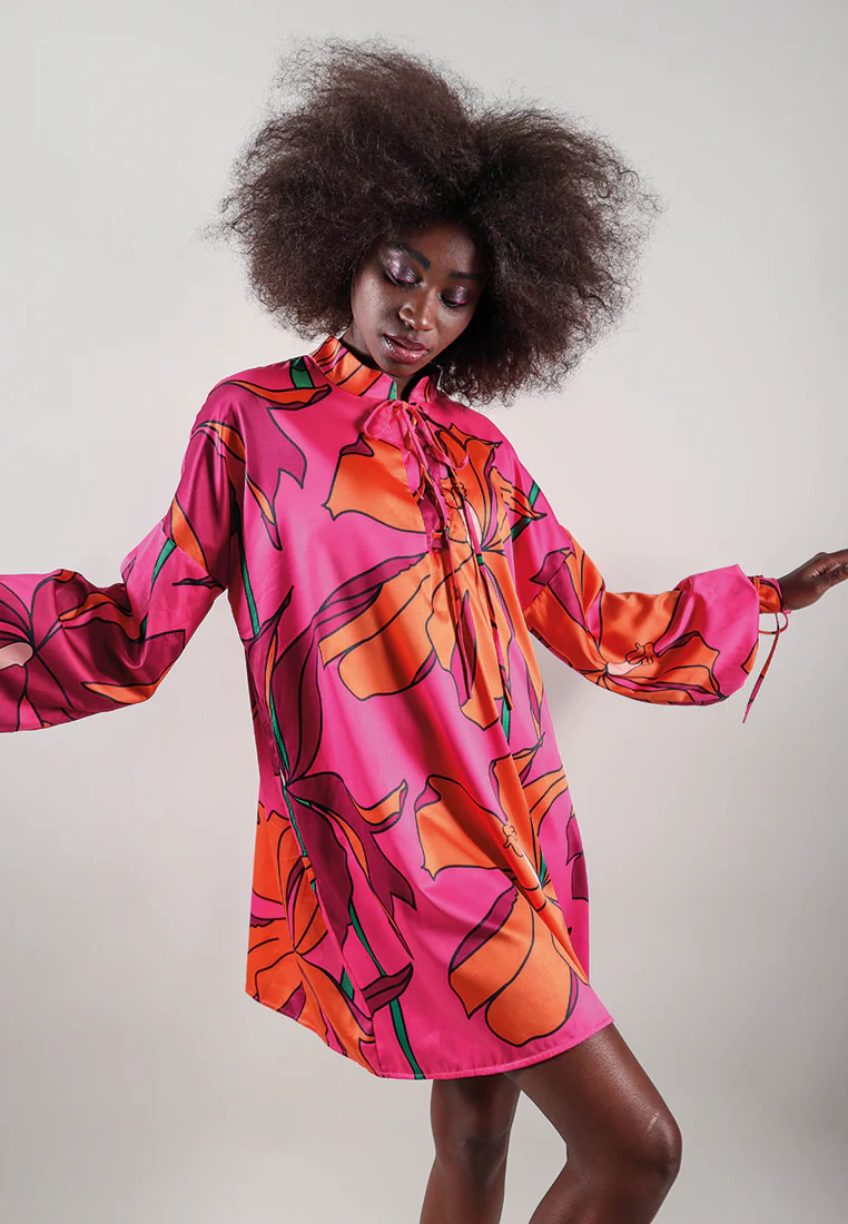 Este vestido con cuello y manga acordonado de seda es una prenda sofisticada y única, diseñada y estampada en Uruguay. El detalle acordonado en el cuello y las mangas añade un toque de elegancia y originalidad, mientras que la seda le da un acabado suave y lujoso. Ideal para ocasiones especiales o eventos elegantes, este vestido es una combinación perfecta de estilo y confort.