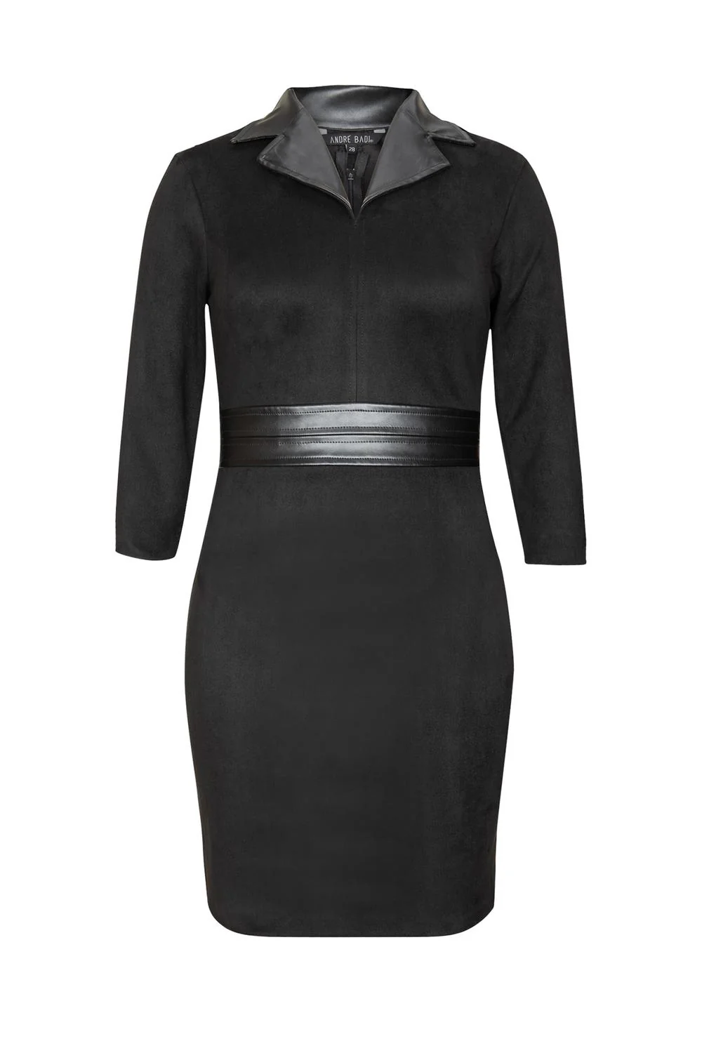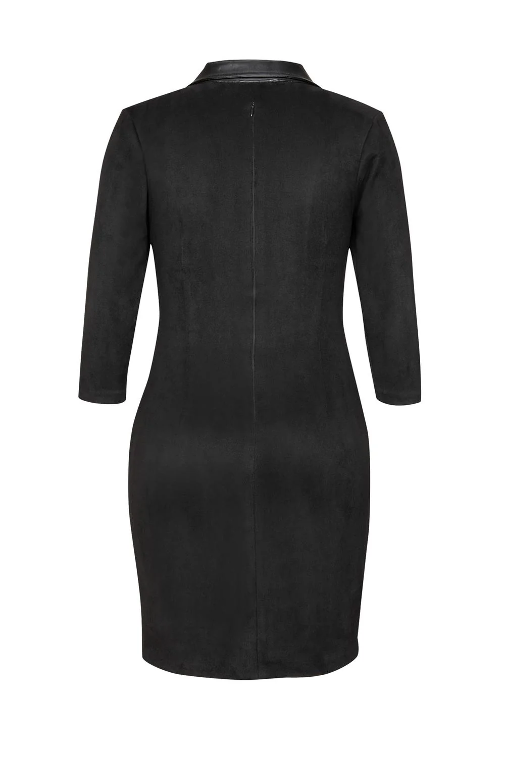 Vestido corto de simulación suede con cuello tipo solapa, aplicaciones efecto piel, costuras decorativas y mangas 3/4. 20-1470