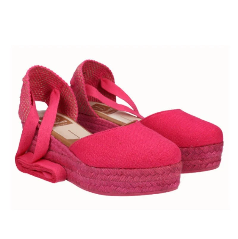 Alpargata valenciana con cintas, piso de yute de 5,5 cm de altura, de los cuales 2,5 cm son de cuña y 3 cm de plataforma, aproximadamente. Fabricada en tejido lino de la mejor calidad y con plantilla de piel súper acolchada. Comodidad, durabilidad y versatilidad de un calzado 100% español.