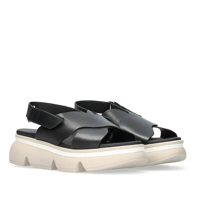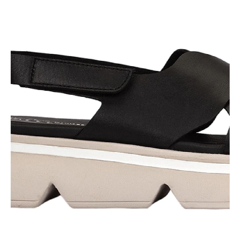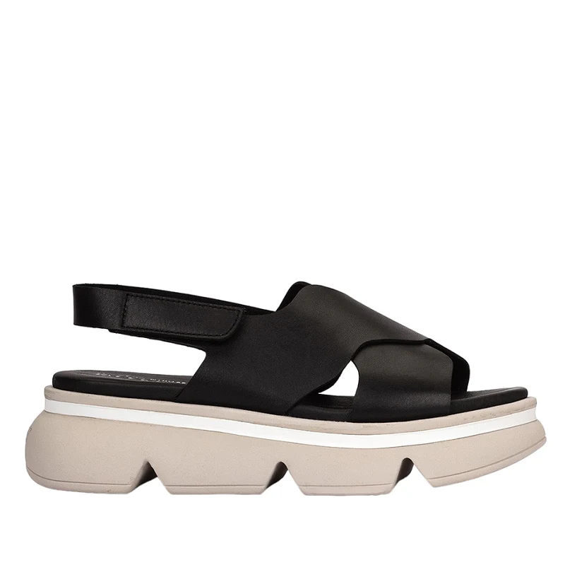 Sandalias planas de piel. Confeccionadas con una pala cruzada con forma de onda y colocadas sobre una cómoda plataforma de estilo moderno que le aporta una apariencia única y futurista. Ya sea que estés paseando por la ciudad o disfrutando de un día relajado en la playa, estas sandalias se adaptarán a tu estilo de vida.