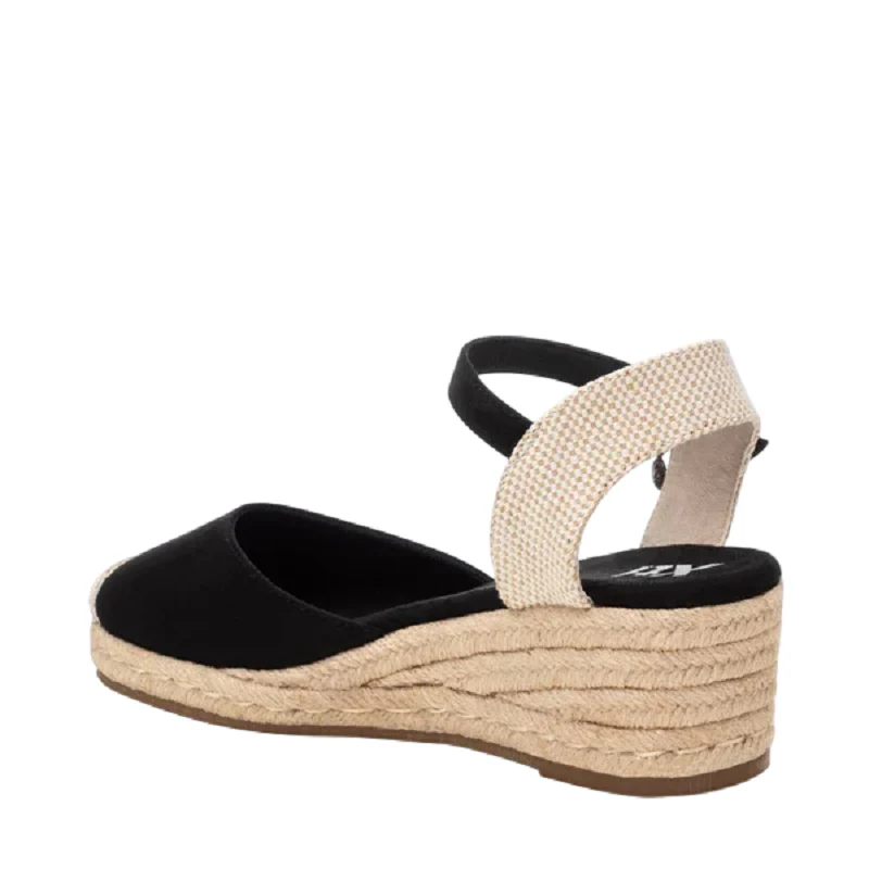 Alpargata estilo valenciana de mujer, de la marca Xti. Fabricada en antelina y material textil en el talón. Sujeción con hebilla. Cuña baja de yute con suela antideslizante. Este modelo ha obtenido el certificado vegano por la organización mundial PETA (Organización de los derechos de los animales).