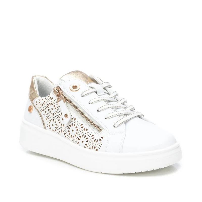 Zapatilla de mujer, de la marca Xti. Fabricada en material que imita a la piel. Con cremallera lateral y facilitar ponértelas. Bonito troquelado lateral. Con plantilla extraíble. Suela plana y antideslizante. Este modelo ha obtenido el certificado vegano por la organización mundial PETA (Organización de los derechos de los animales)