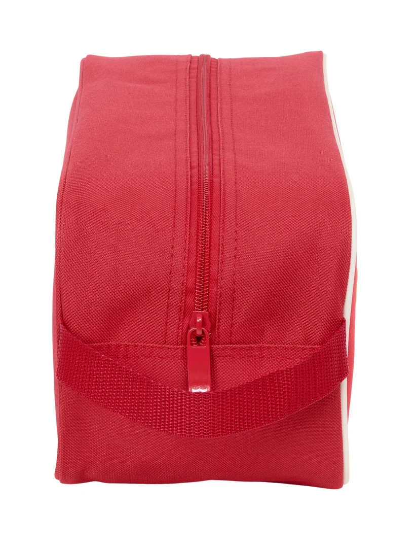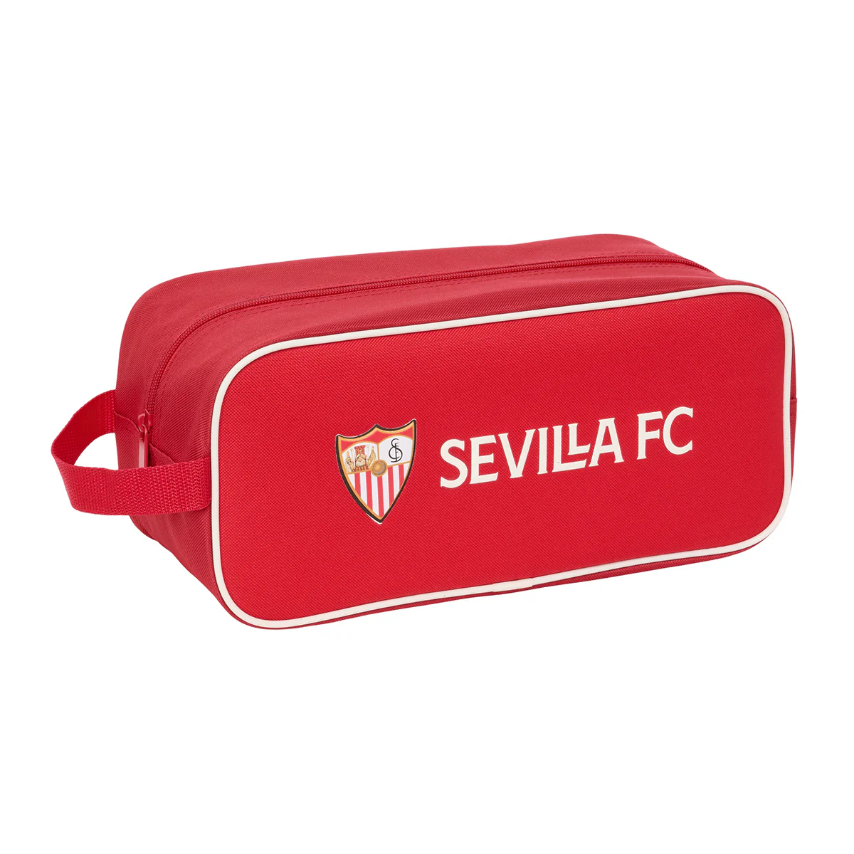 Zapatillero rojo con asa y escudo del Sevilla FC.