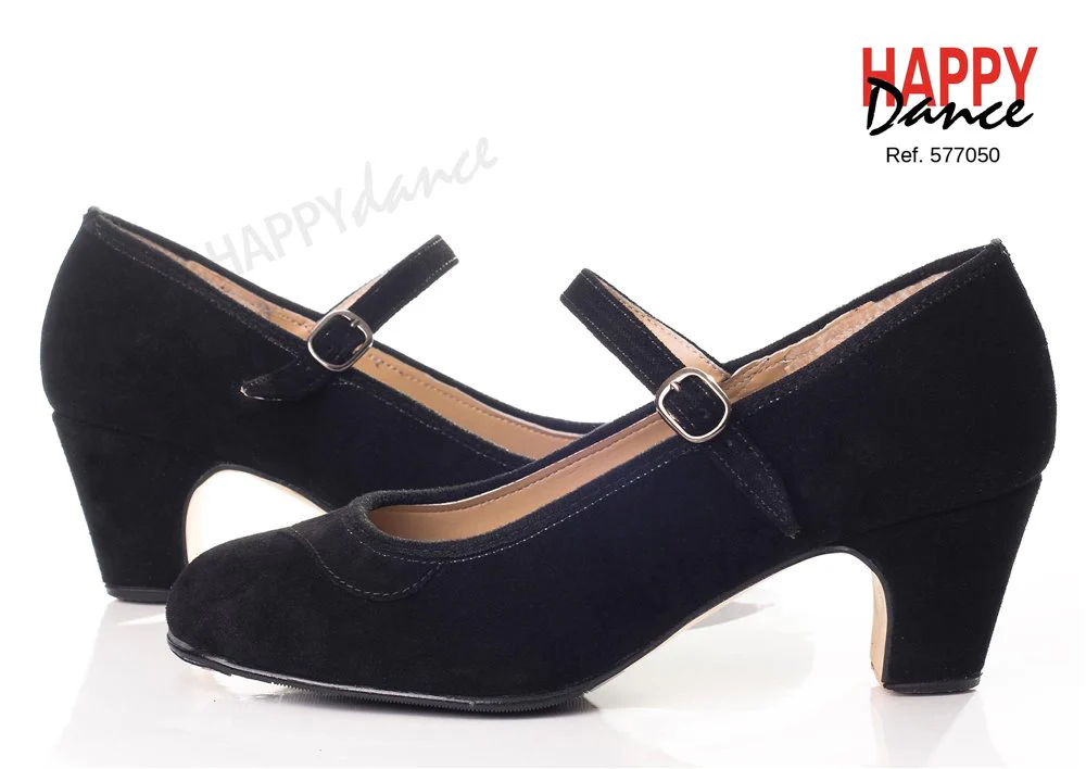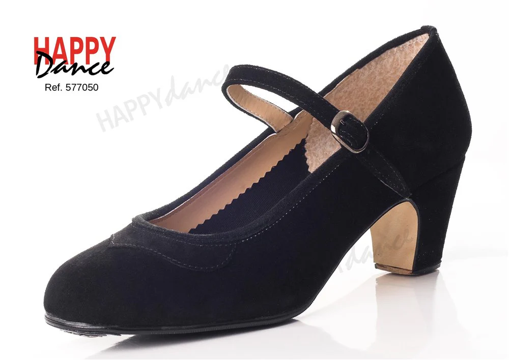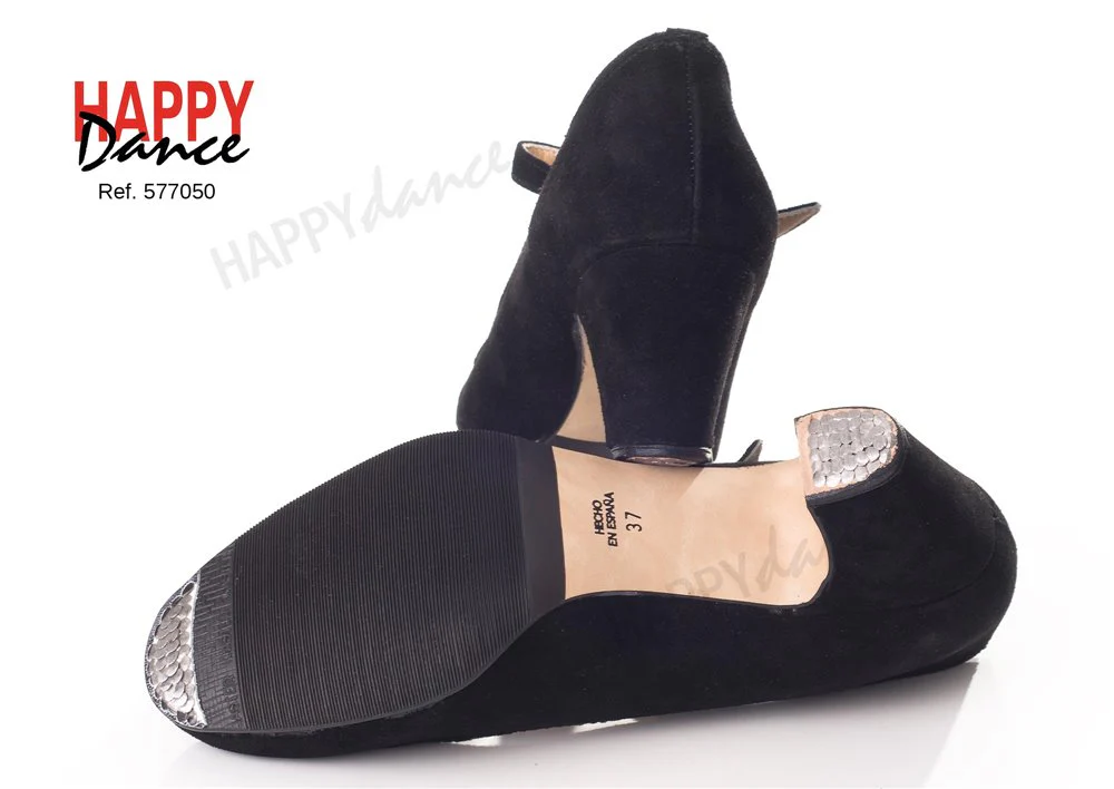 Zapato amateur medio forro en piel o ante con hebilla y adorno pico, plantilla acolchada, suela con clavos y filis de Happy Dance.