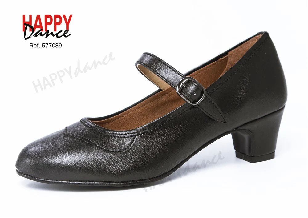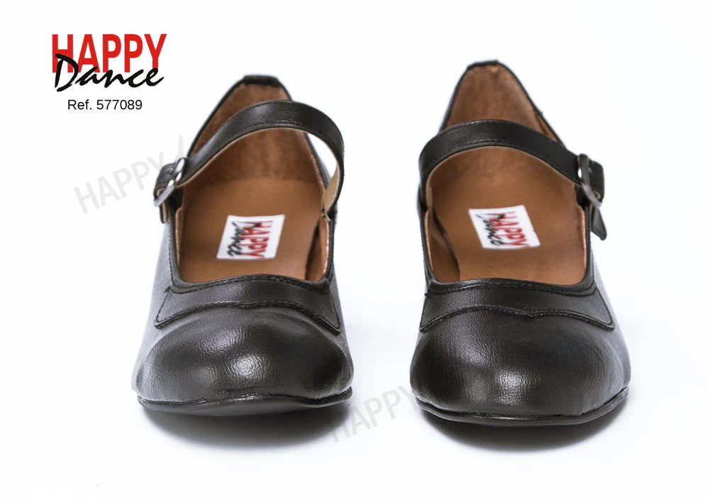 Zapato de flamenco iniciación sintético forrado con hebilla y adorno en pico de Happy Dance.