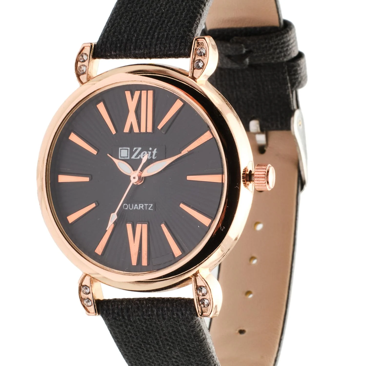Reloj Análogo Zeit Para Dama Modelo CB00023542 extensible Tacto Piel color de corre Negro Material de caja Aleación y fijación de Hebilla.