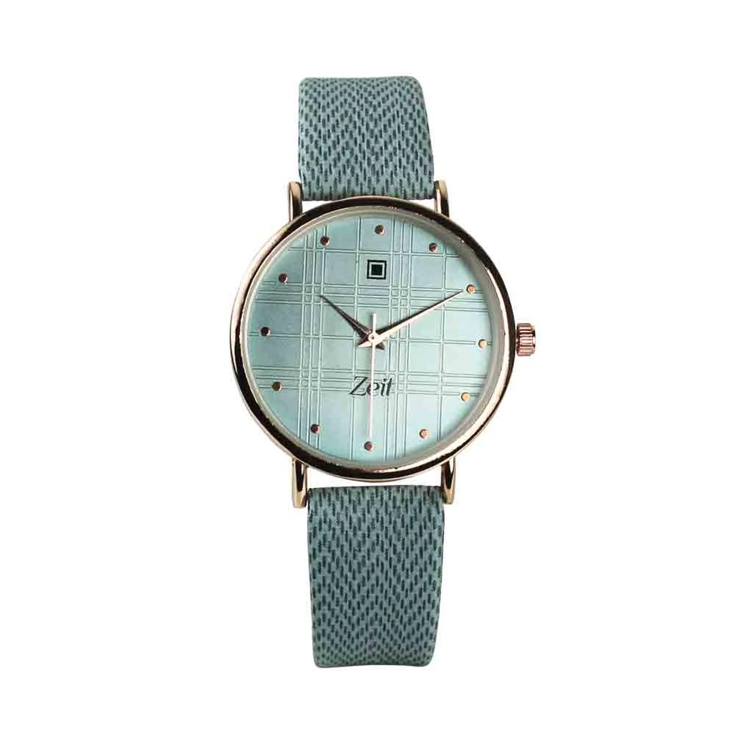 Mujer/Tactopiel/Azul Con Textura/Caja Oro Rosa/ Cara Azul Con CruadĆcula/Horas En Oro Rosa