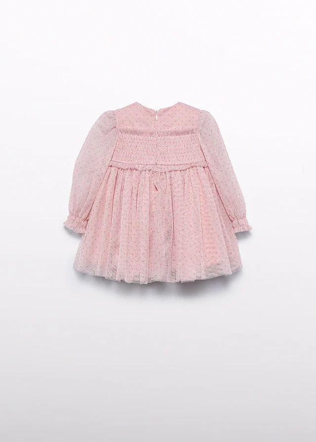 Vestido tul folcado cuarzo
