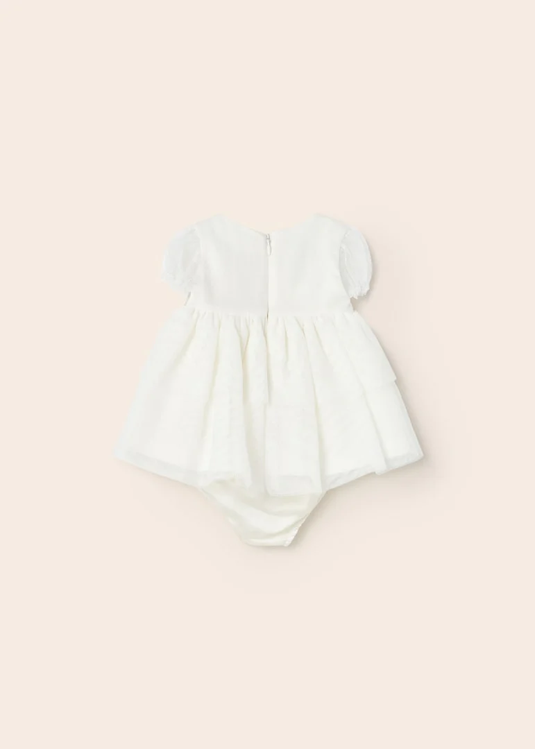 Vestido tricot y tul crudo