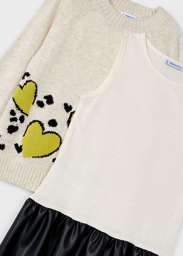 Vestido combinado tricot corazones