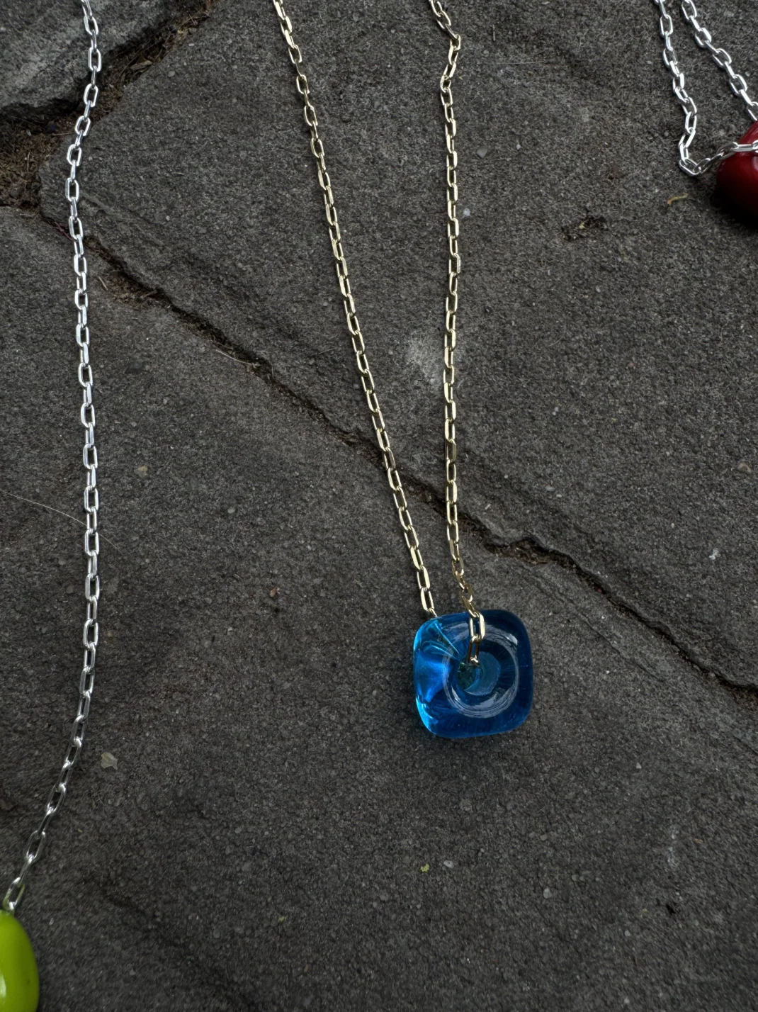 COLGANTE 3 DIJES IRREGULARES Y CADENA FINITA